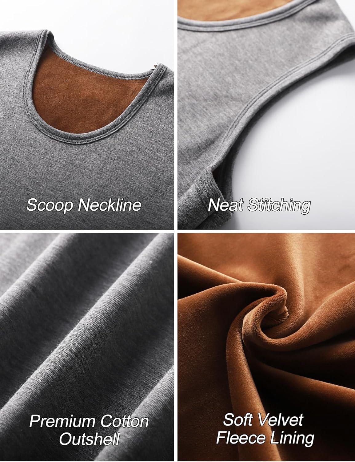 Flygo 2 Pack Thermal Tank Top Men Cotton Winter Warm Fleece Lined Underwear Sleeveless Vest Undershirt(Black+lightgrey)