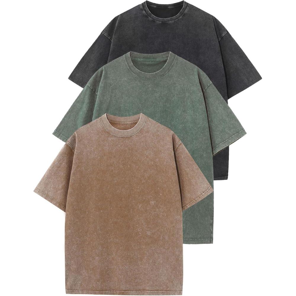 Be the first to review “Flygo 3 Pack Men Oversized T Shirts Acid Washed Unisex Tee Loose Fit Short Sleeve Casual Streetwear Baggy Basic Tops(Black+khaki+armygreen)”