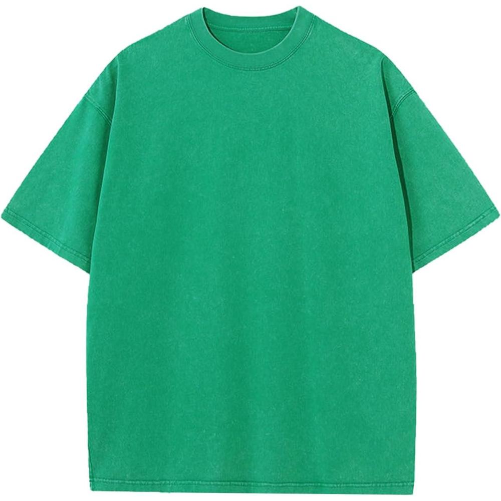 Flygo 3 Pack Men Oversized T Shirts Acid Washed Unisex Tee Loose Fit Short Sleeve Casual Streetwear Baggy Basic Tops(Green)