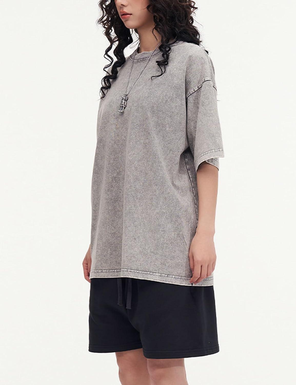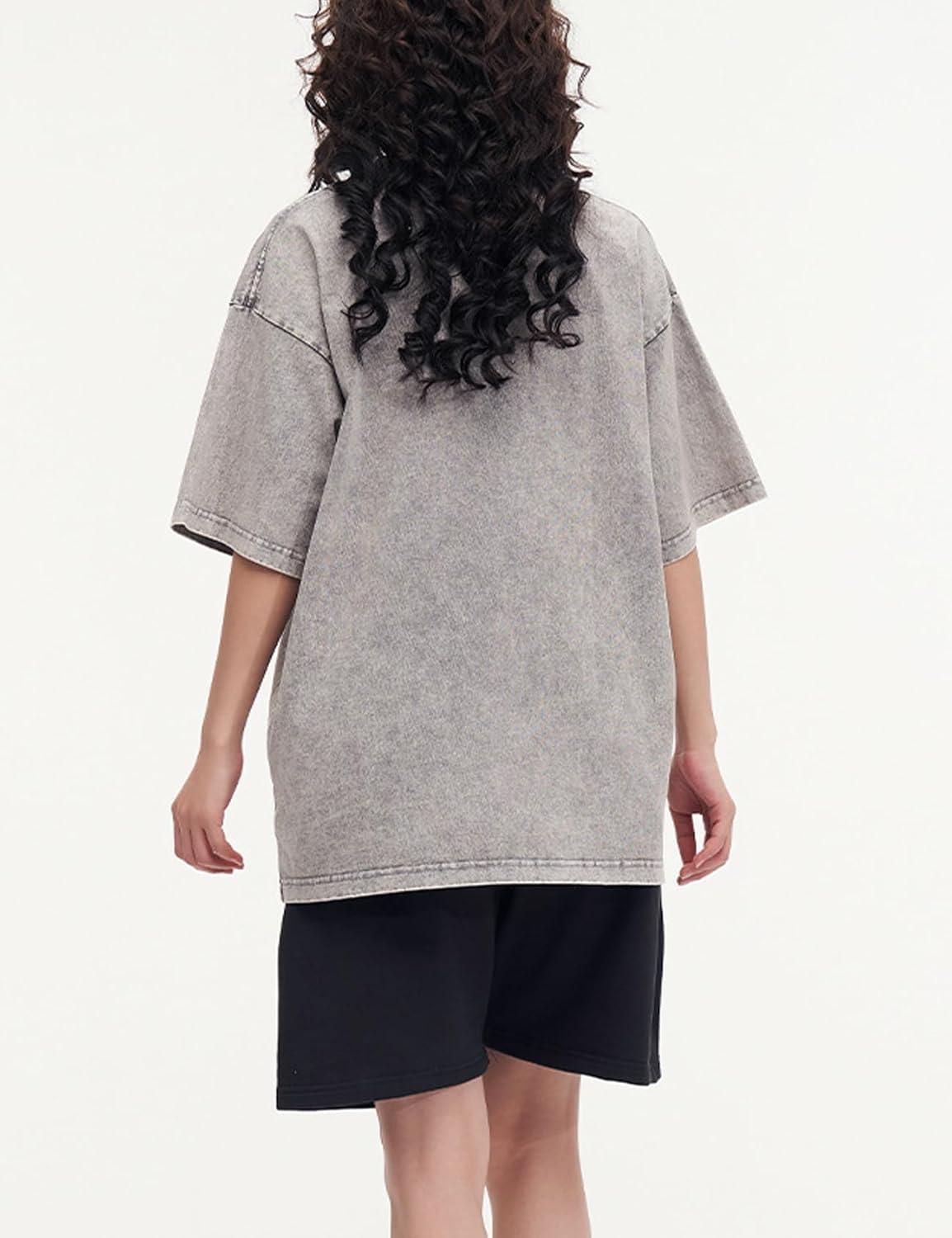 Flygo 3 Pack Men Oversized T Shirts Acid Washed Unisex Tee Loose Fit Short Sleeve Casual Streetwear Baggy Basic Tops(Grey)