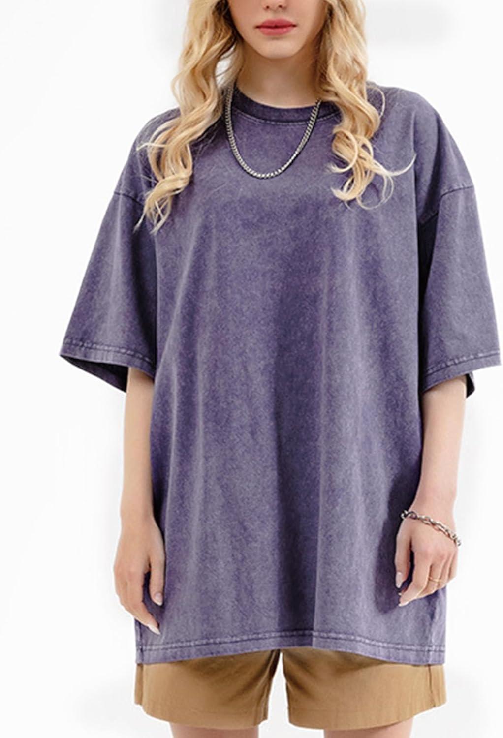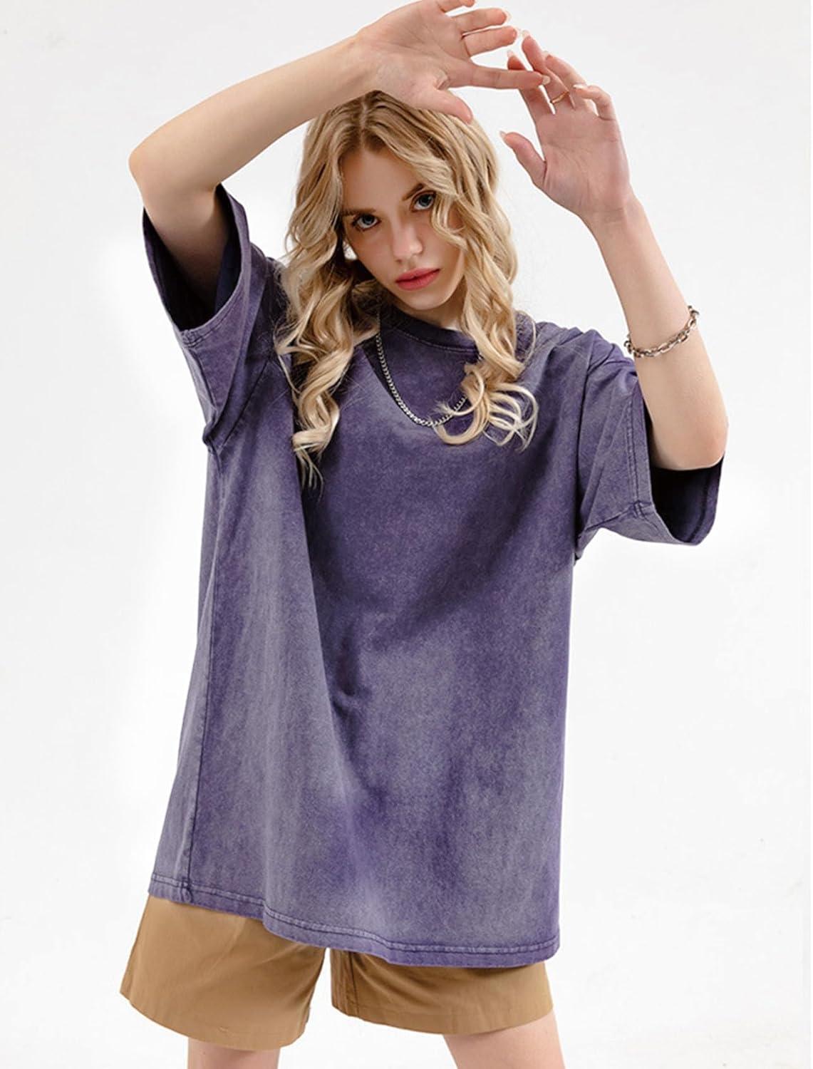 Flygo 3 Pack Men Oversized T Shirts Acid Washed Unisex Tee Loose Fit Short Sleeve Casual Streetwear Baggy Basic Tops(Purple)