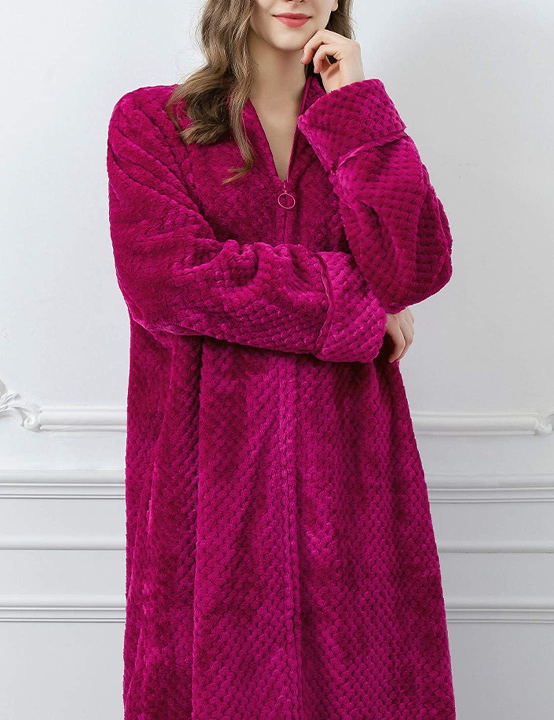 Flygo Adults Zip Up Warm Plush Flannel Fleece Robe Housecoat Sleepwear Dressing Gown Bathrobe for Men Women(Rose Red 02)