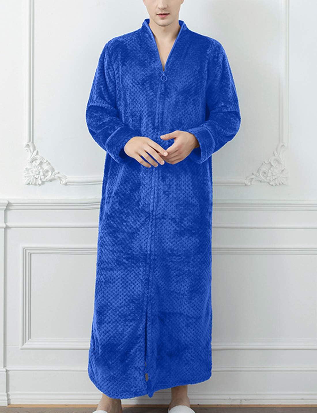 Flygo Adults Zip Up Warm Plush Flannel Fleece Robe Housecoat Sleepwear Dressing Gown Bathrobe for Men Women(Sky Blue 02)