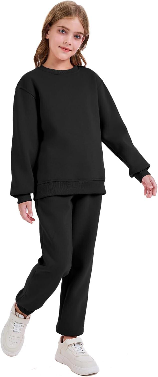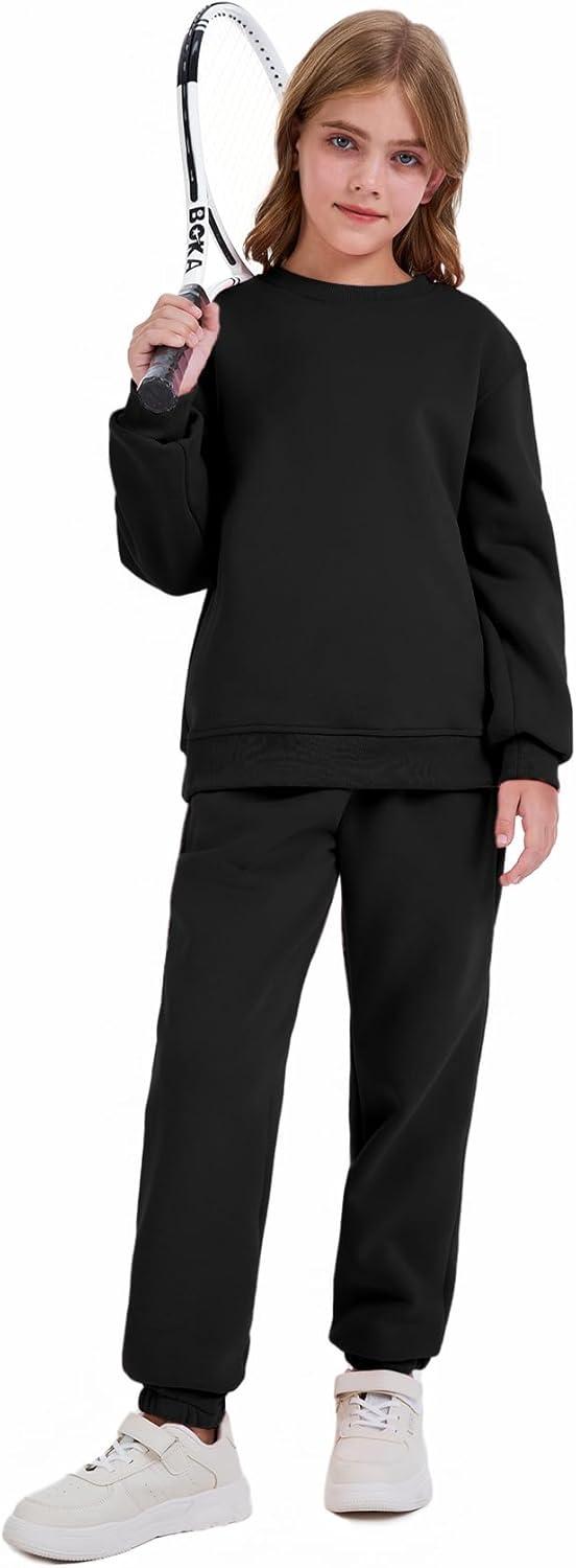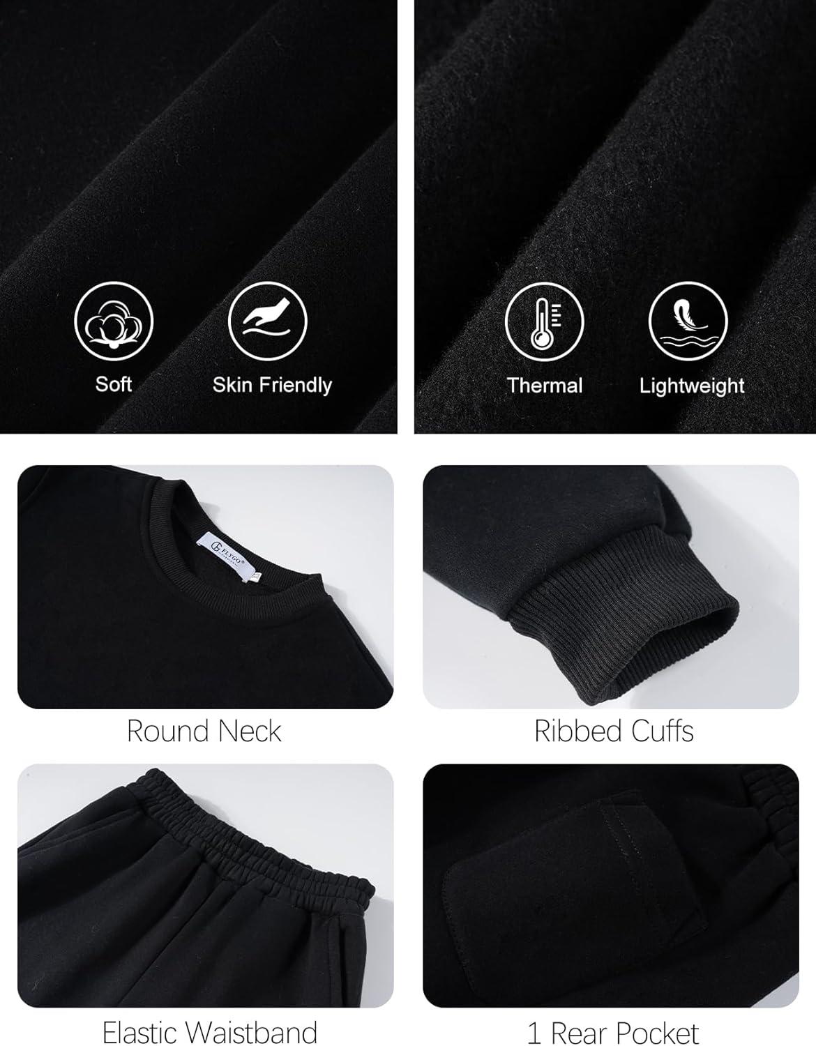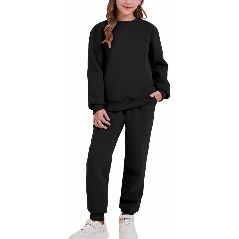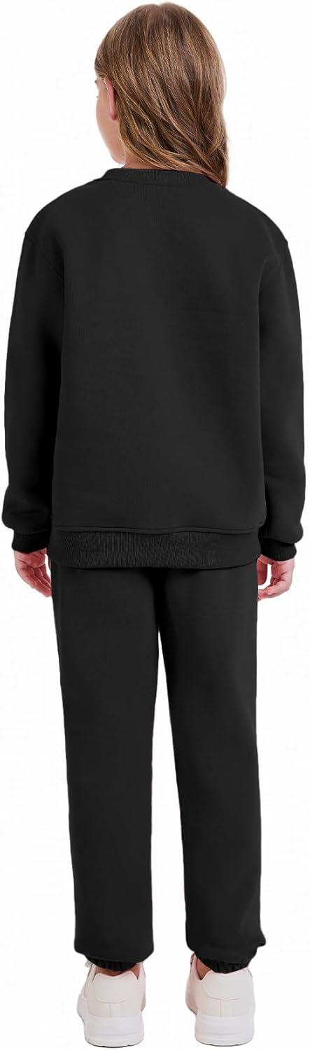 Flygo Boys Girls 2 Piece Outfits Fleece Kids Sweatsuit Crewneck Sweatshirt and Sweatpants Tracksuit Clothing Set(Black)