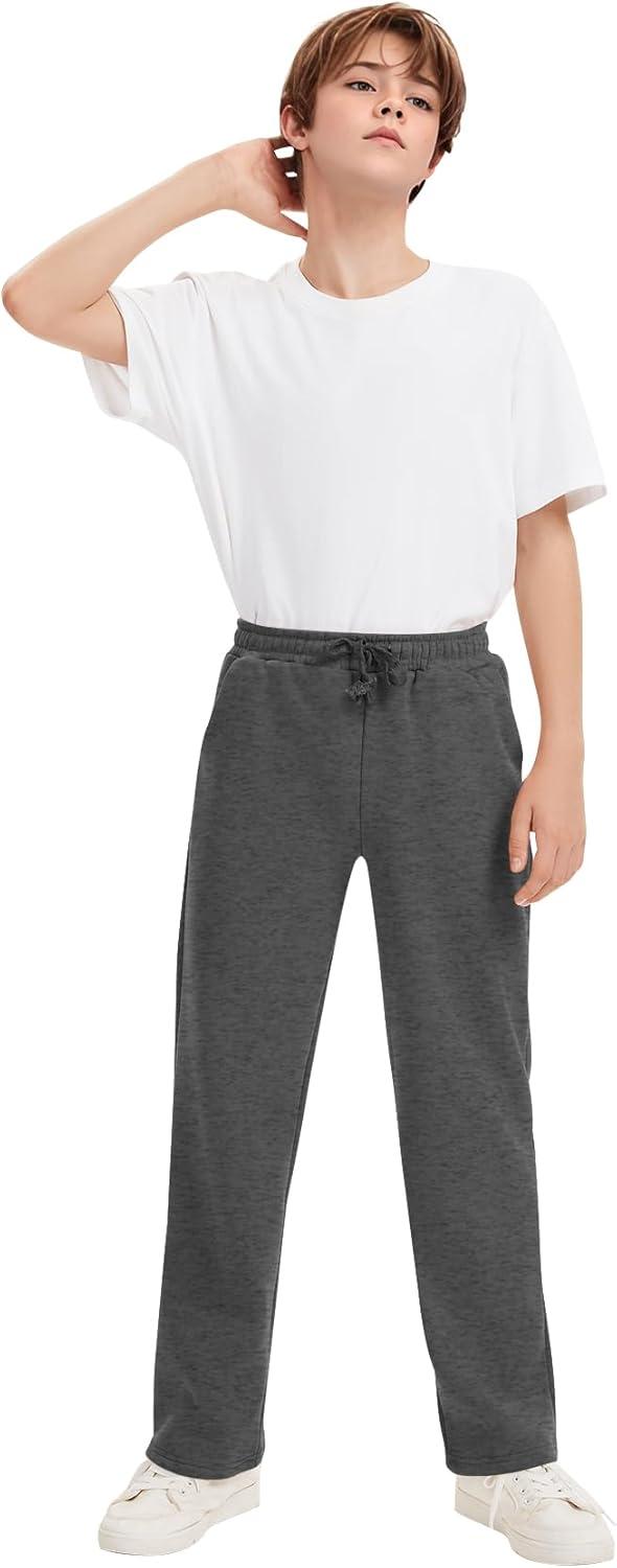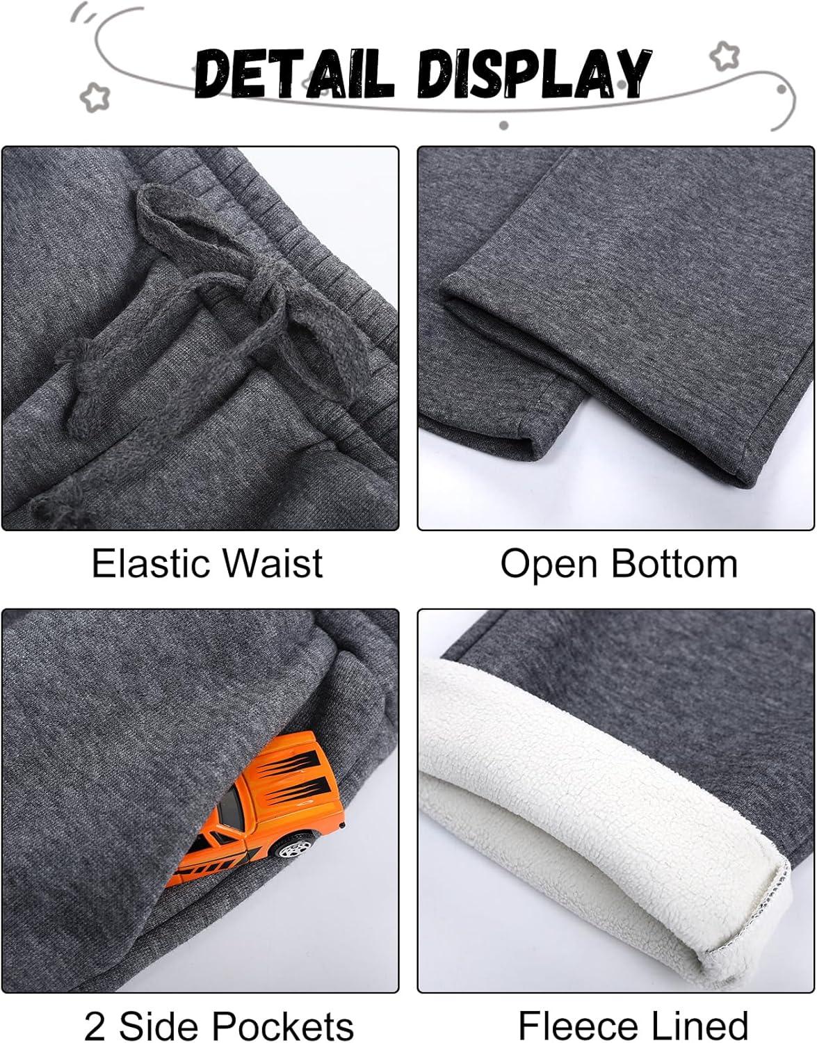 Flygo Boys Sweatpants Fleece Jogger Sherpa Lined Boys Athletic Pants Kids Sweatpants with Pockets(Dark Grey)