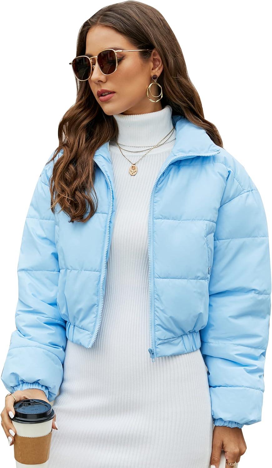 Get a free gift with your purchase of Flygo Cropped Puffer Jacket Women 2025 Winter Warm Zip Up Padded Short Quilted Jackets Down Coat(Blue). Limited quantities available!