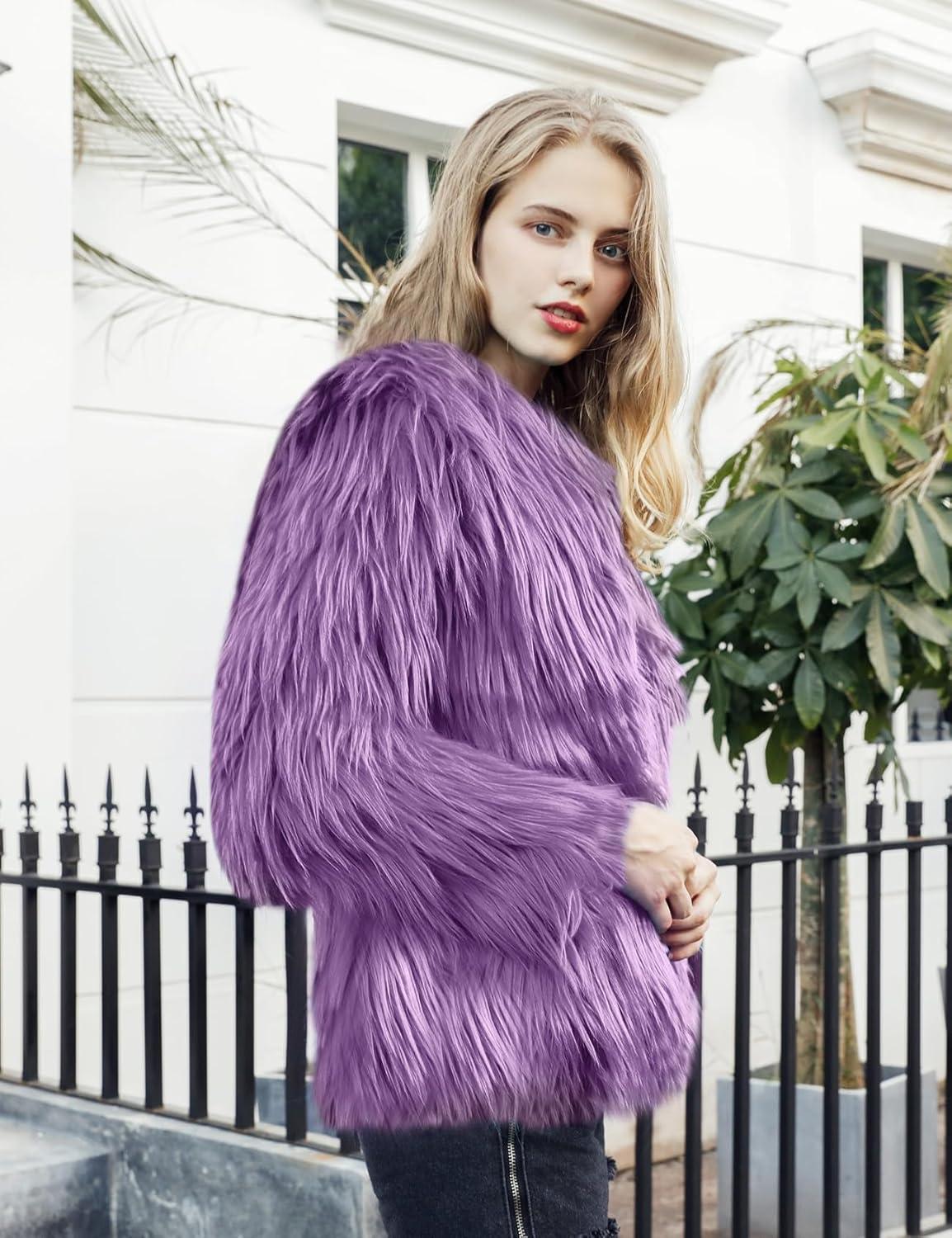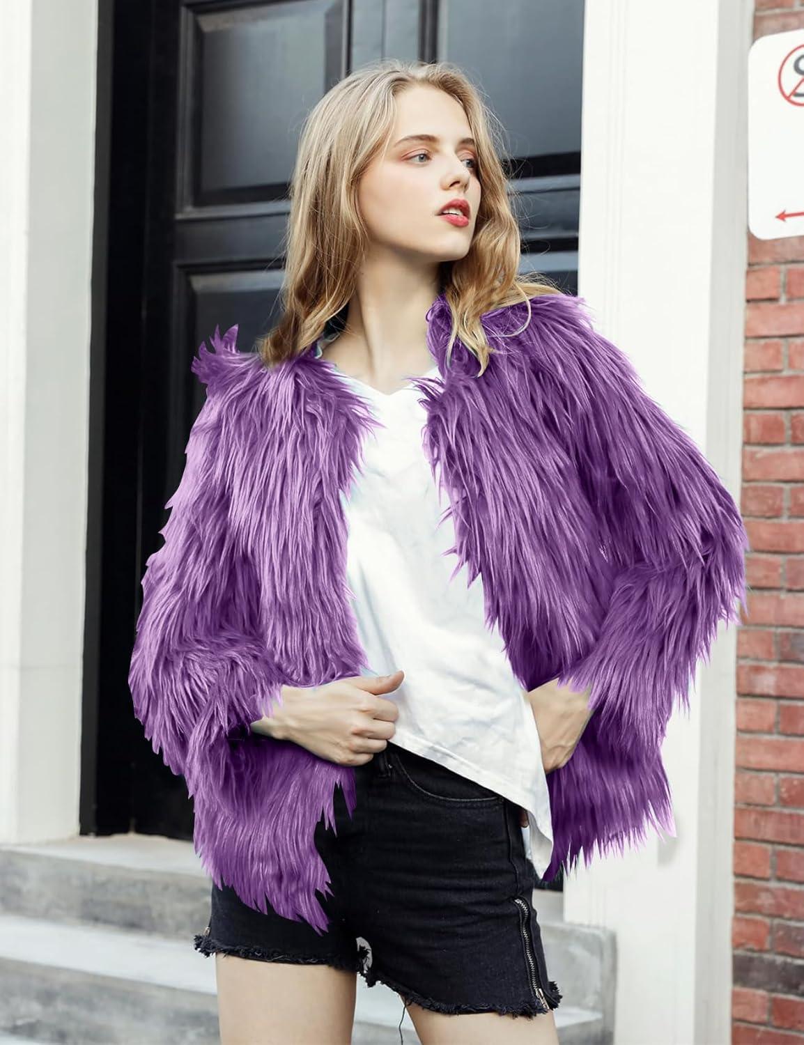 Don’t miss out on our limited-time offer: get a free {accessory} with your purchase of Flygo Faux Fur Coat Women Faux Fur Jacket Fluffy Open Front Cardigan Shaggy Short Coat Fall Winter Jacket(Purple).
