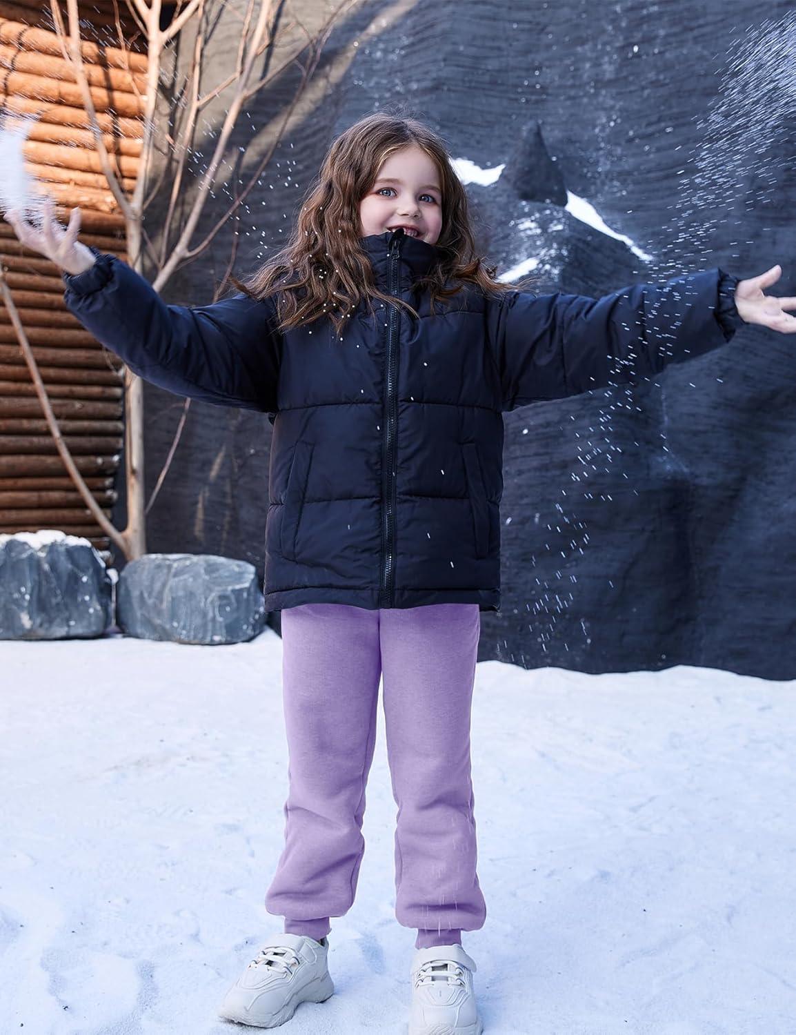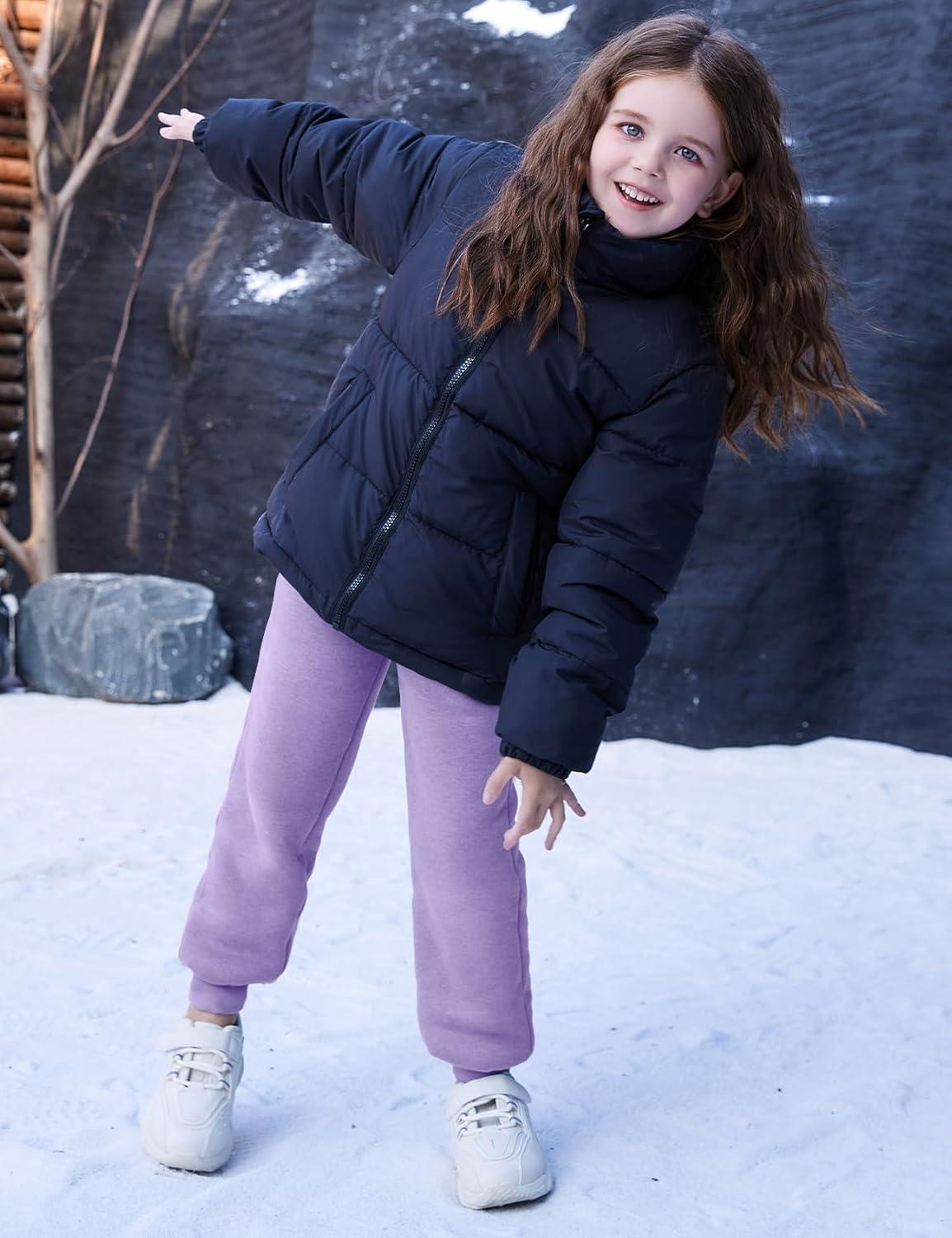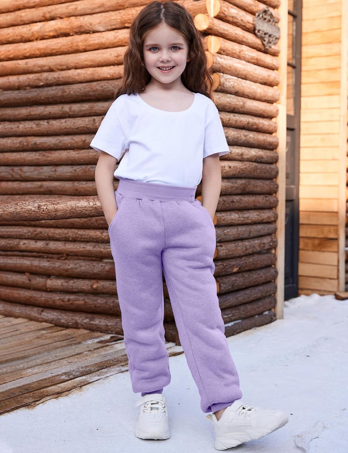 Flygo Girls Boys Fleece Joggers Sweatpants Sherpa Lined Winter Warm Elastic Waist Jogger Pants with Pockets(Purple)