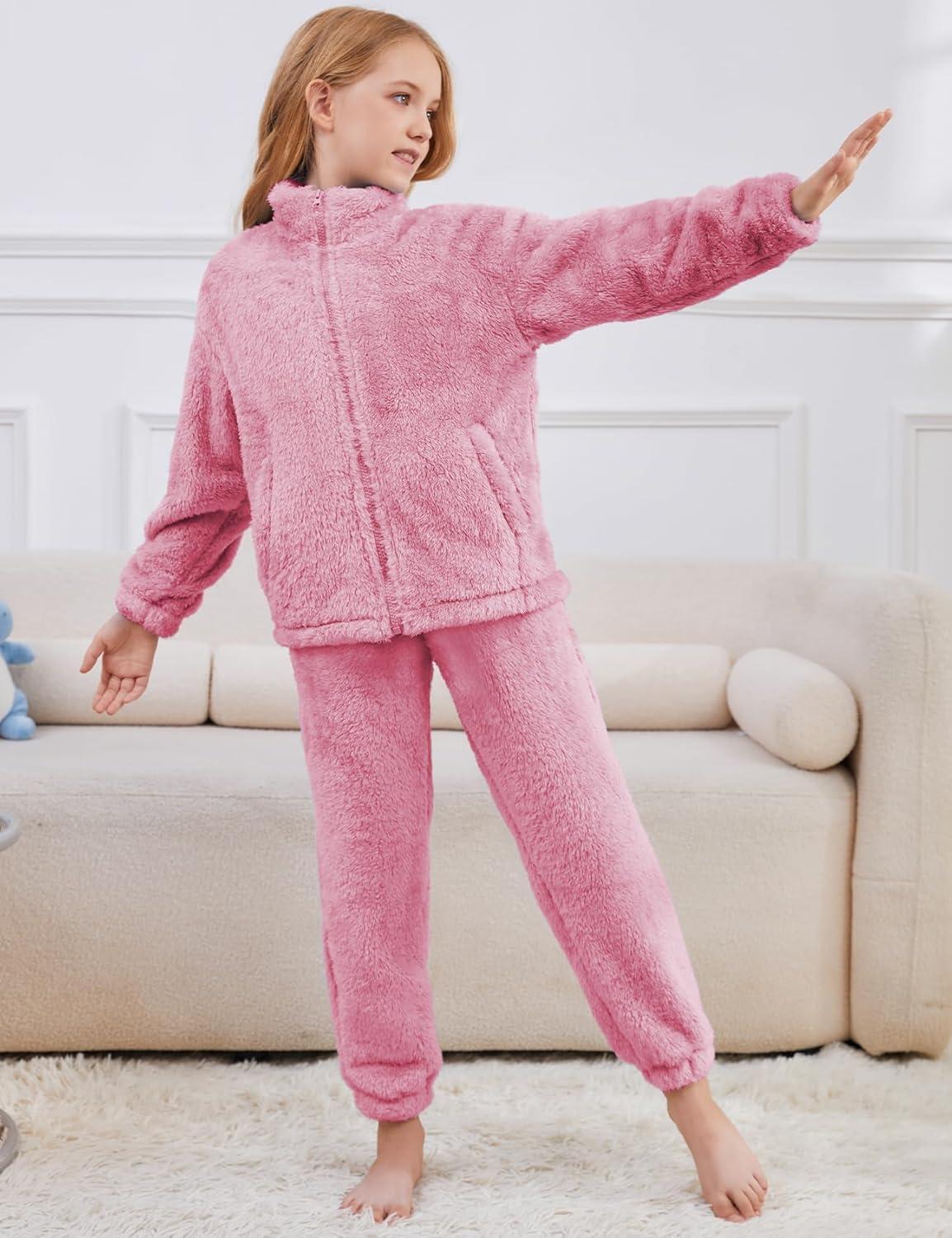 Get your hands on our newest Flygo Girls Fuzzy Pants Sets Kid 2 Piece Winter Fleece Outfits Stand Collar Zip Up Sweatshirts Fluffy Sweatpants with Pockets(Pink) and enjoy a limited-time discount offer.