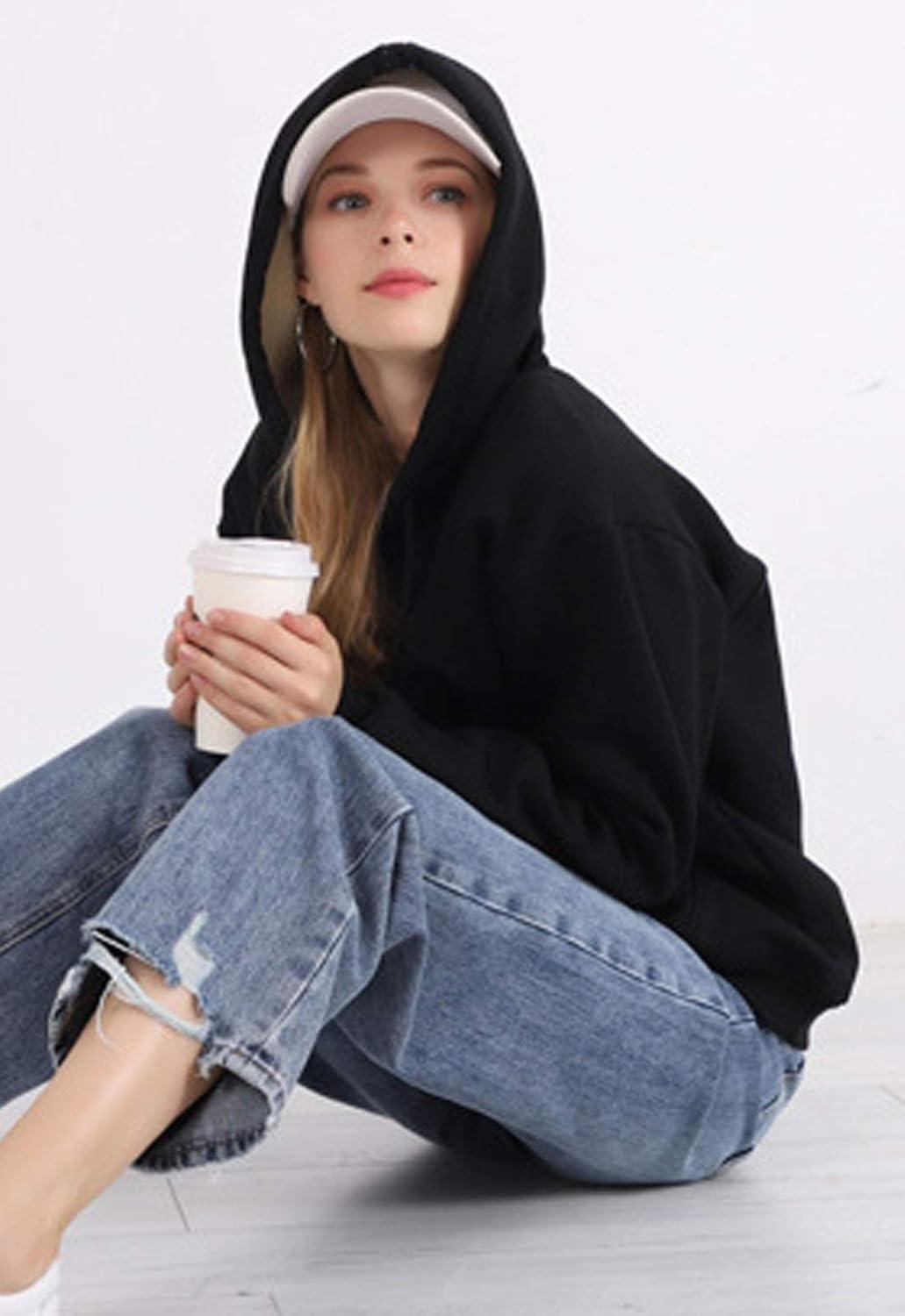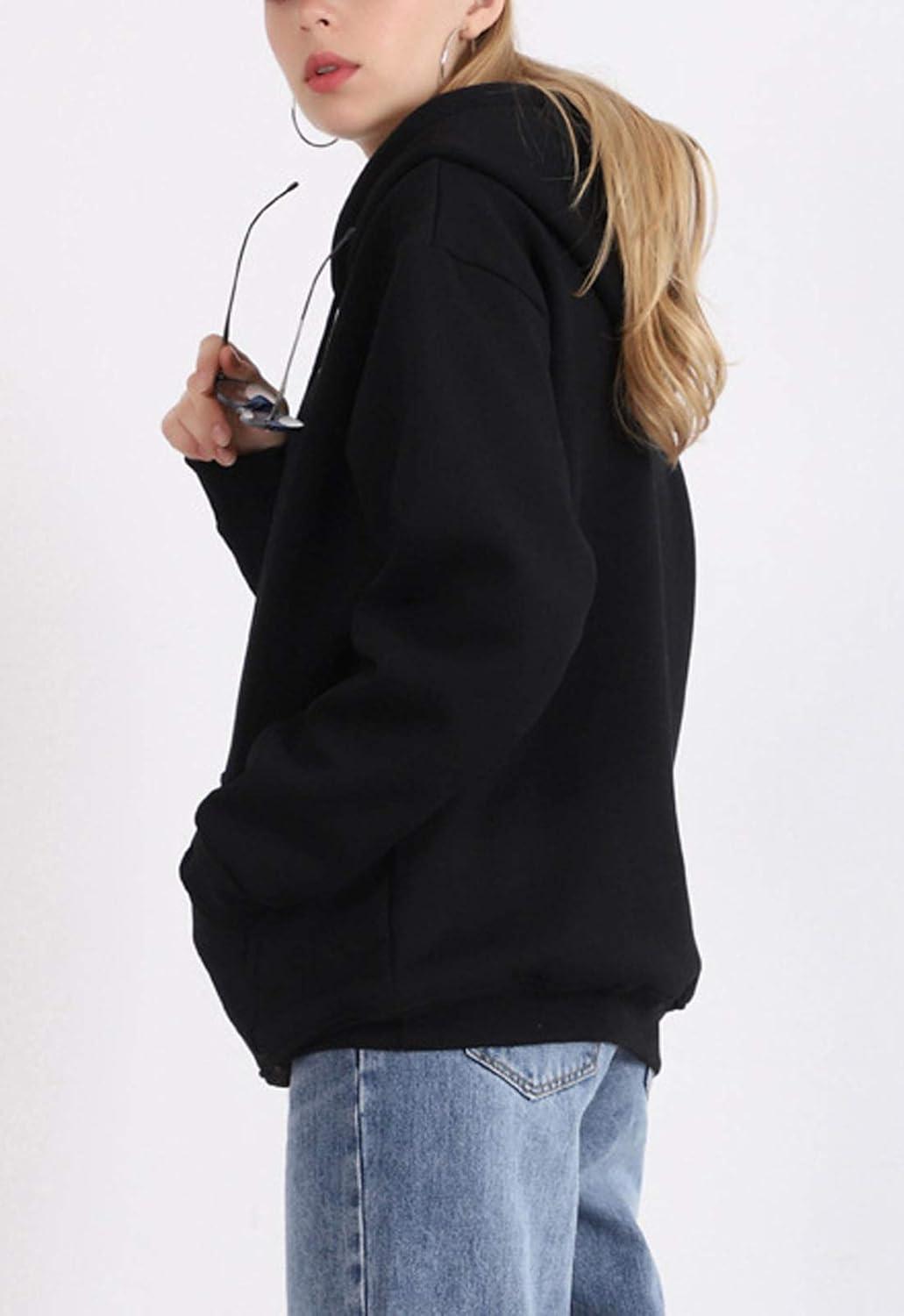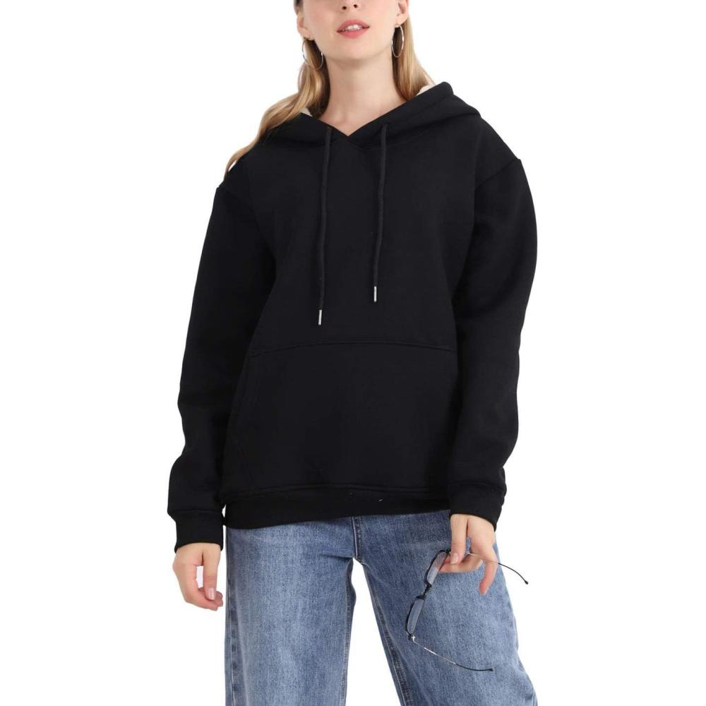 Flygo Hoodies for Women Winter Warm Sherpa Lined Fleece Pullover Hooded Sweatshirts(Black)