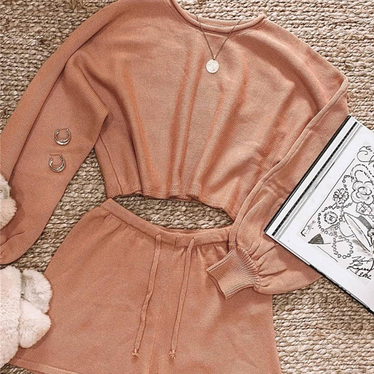 Womens casual two piece knitted outfits loungewear outwear pajama set oversized spring fall tracksuit outfits fitness suits long sleeve matching lounge set crop tops gym jogger jogging suits sweatsuit sweatshirt shorts for women girls.