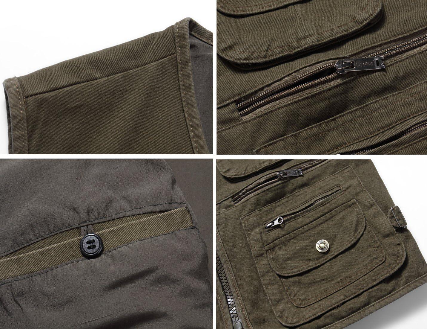 Flygo Men's 100% Cotton Outdoor Multiple Pockets Safari Fishing Journalist Vest Waistcoat
