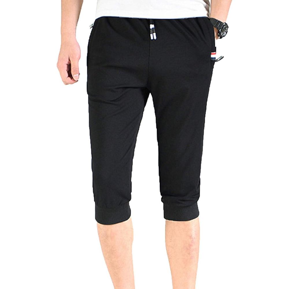 Flygo Mens 3/4 Joggers Sweatpants Below Knee Running Workout Capri Pants(Black)