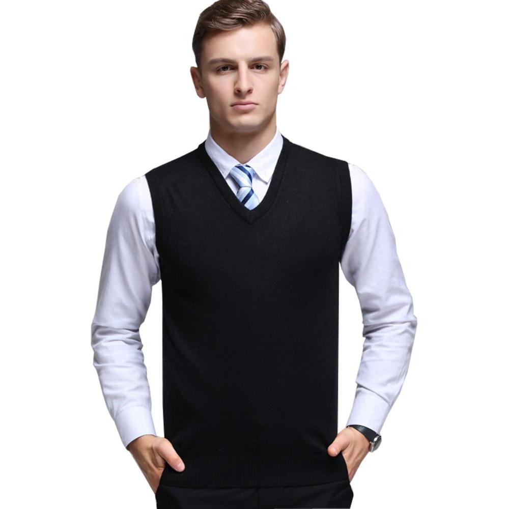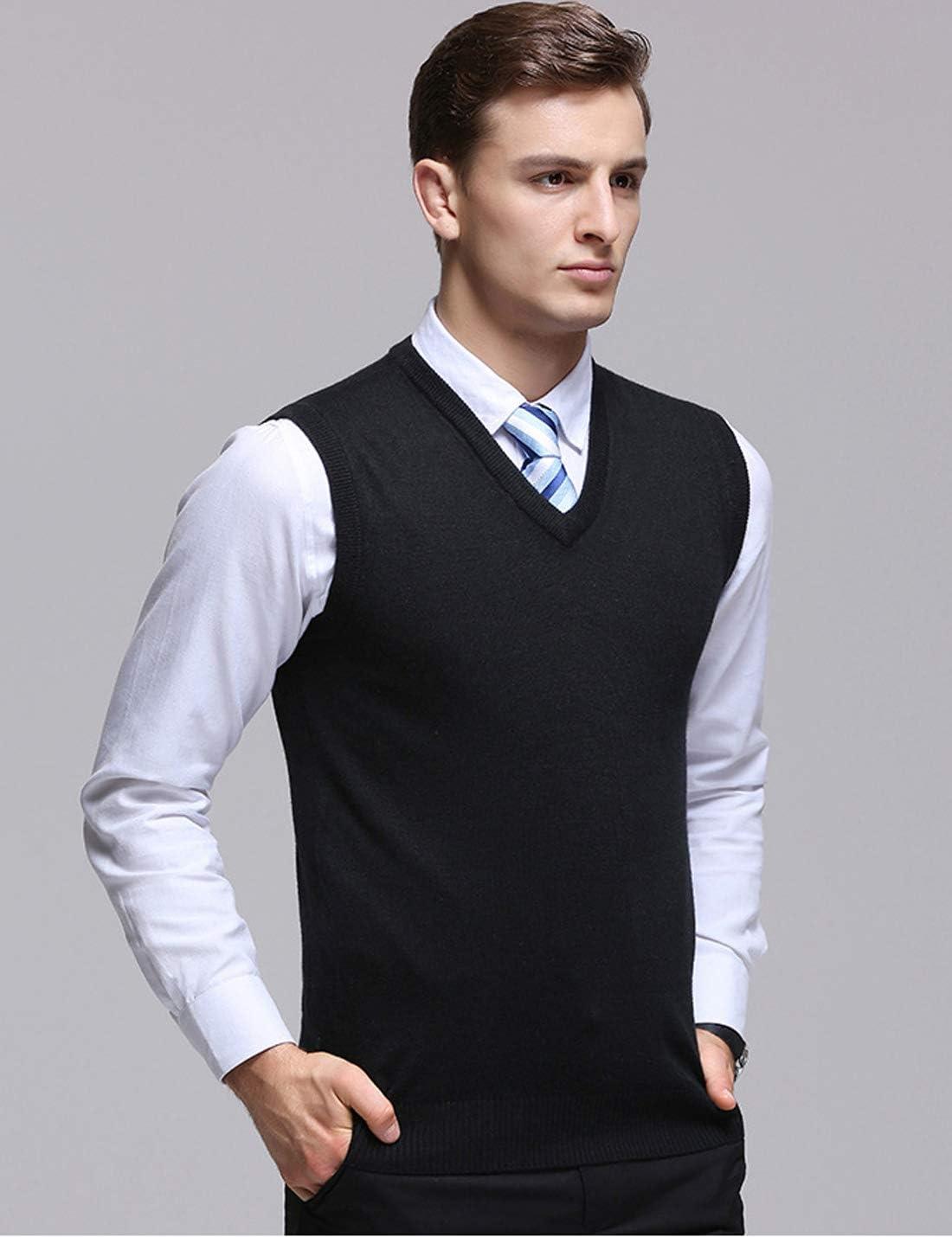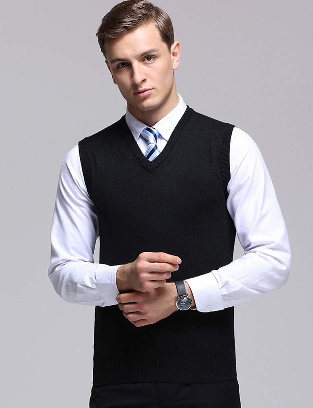 Flygo Men’s Basic Slim Fit V-Neck Pullover Sweater Vest Wool Blend Knit Vest(Black)