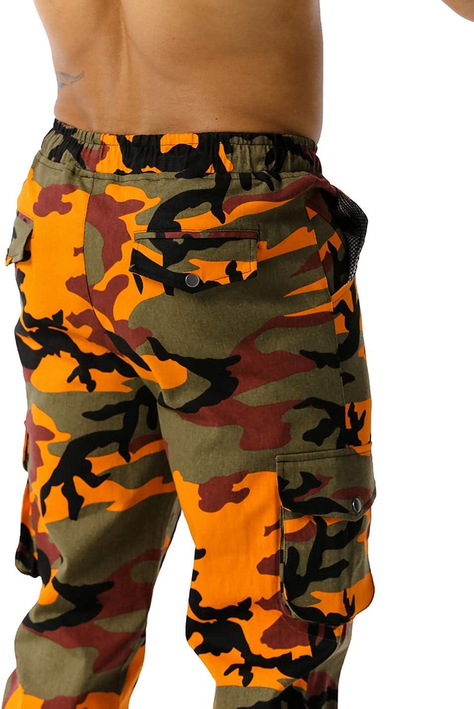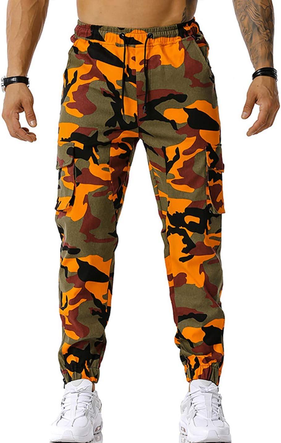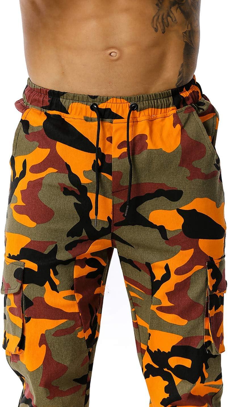 Flygo Men’s Camo Joggers Pants Casual Cotton Workout Active Cargo Sweatpants with Pockets(Orange)