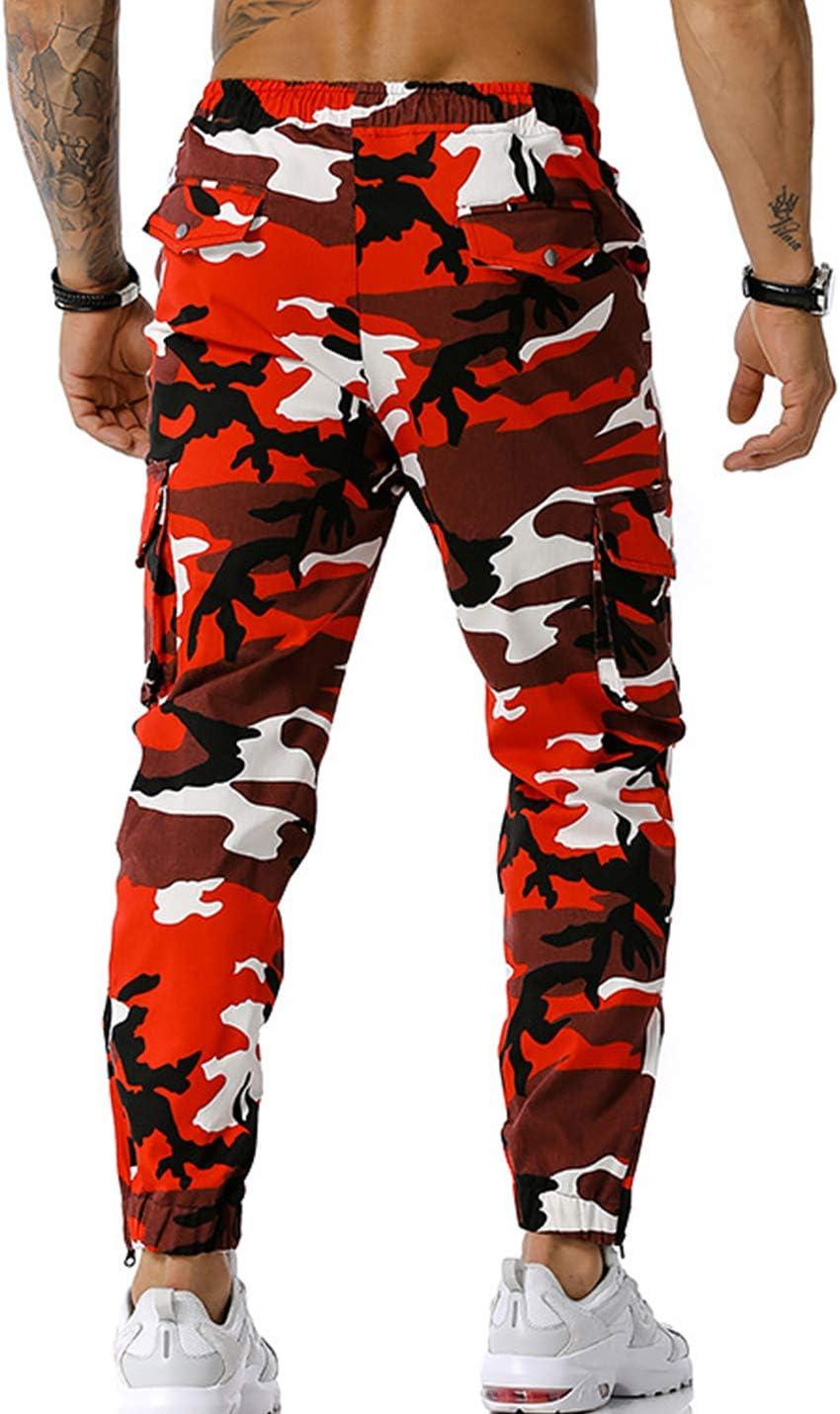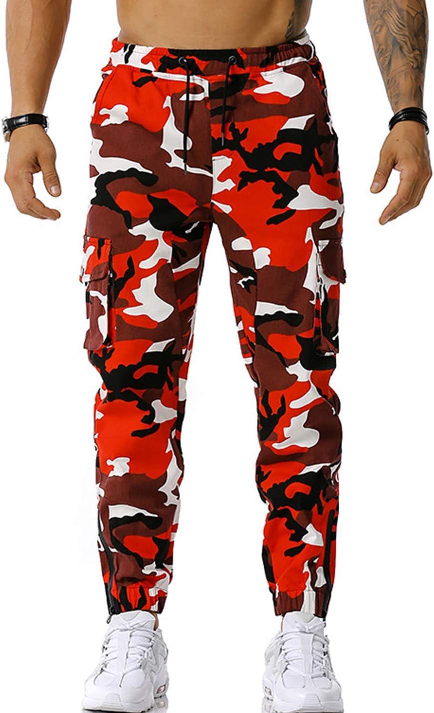 Flygo Men’s Camo Joggers Pants Casual Cotton Workout Active Cargo Sweatpants with Pockets(Red)