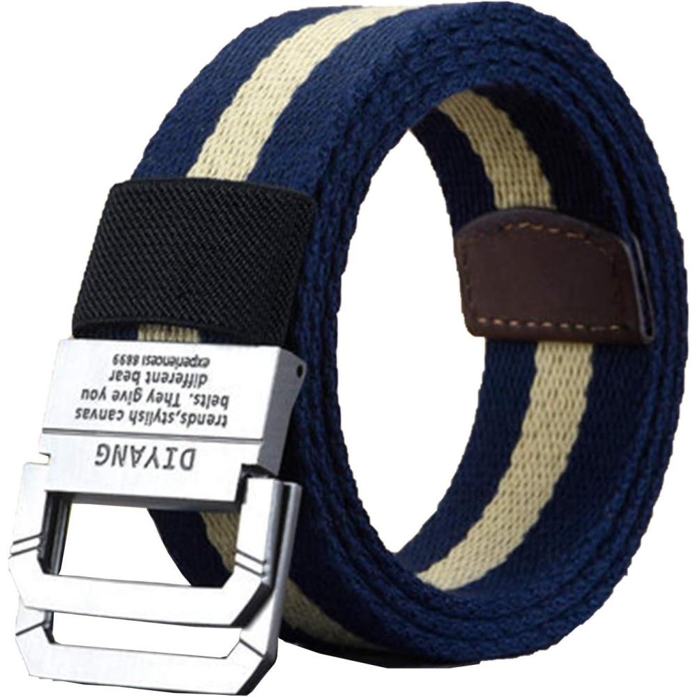 Score big savings on Flygo Mens Canvas Web Belt Double D-Ring Buckle 1.5" Wide Leather Tip Multi-Color Tactical Military Webbing Belts(Navy Yellow Stripe) during our back-to-school sale. Limited quantities available.