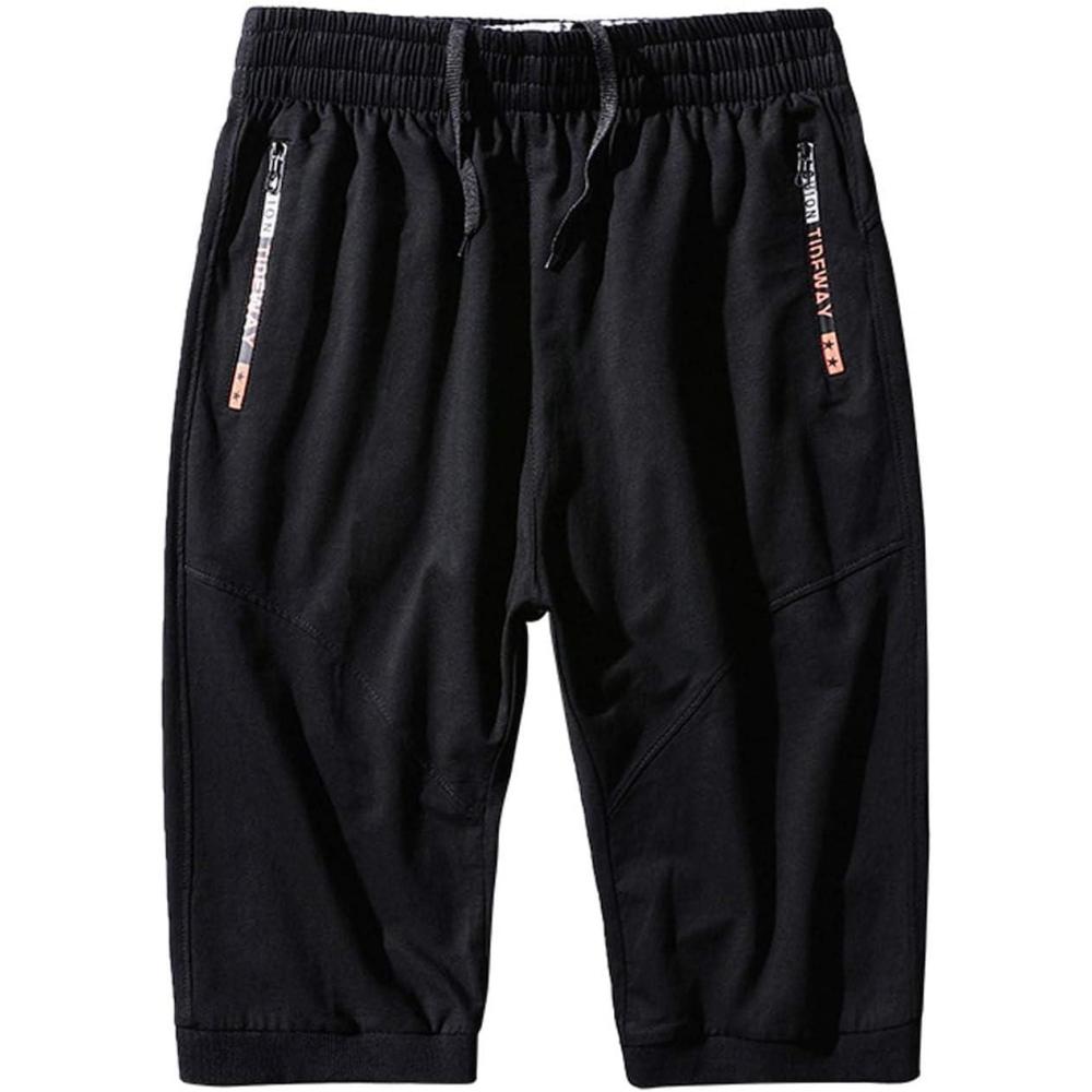 Flygo Men’s Casual 3/4 Length Running Track Yoga Capris Jogger Pants Sweatpants Shorts(Black)