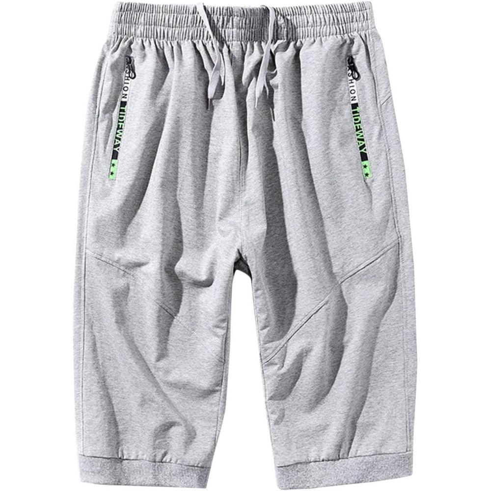 Flygo Men’s Casual 3/4 Length Running Track Yoga Capris Jogger Pants Sweatpants Shorts(Light Grey)
