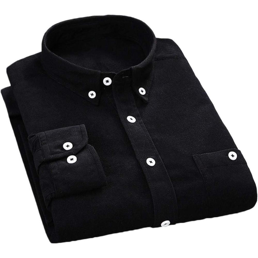 Flygo Mens Casual Corduroy Shirt Button Down Long Sleeve Solid Tops Shirts Jacket(Black)