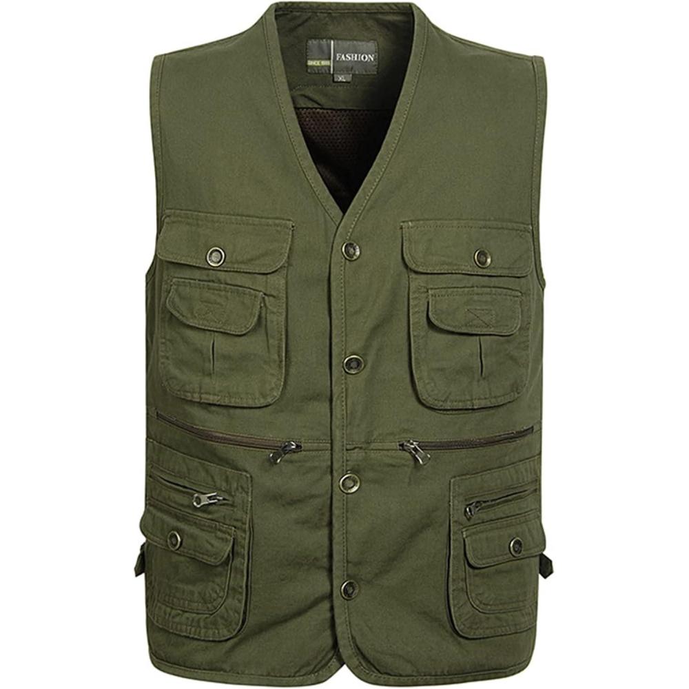 Flygo Men’s Casual Cotton Outdoor Work Safari Travel Photo Vest with Multi Pockets(Army Green)
