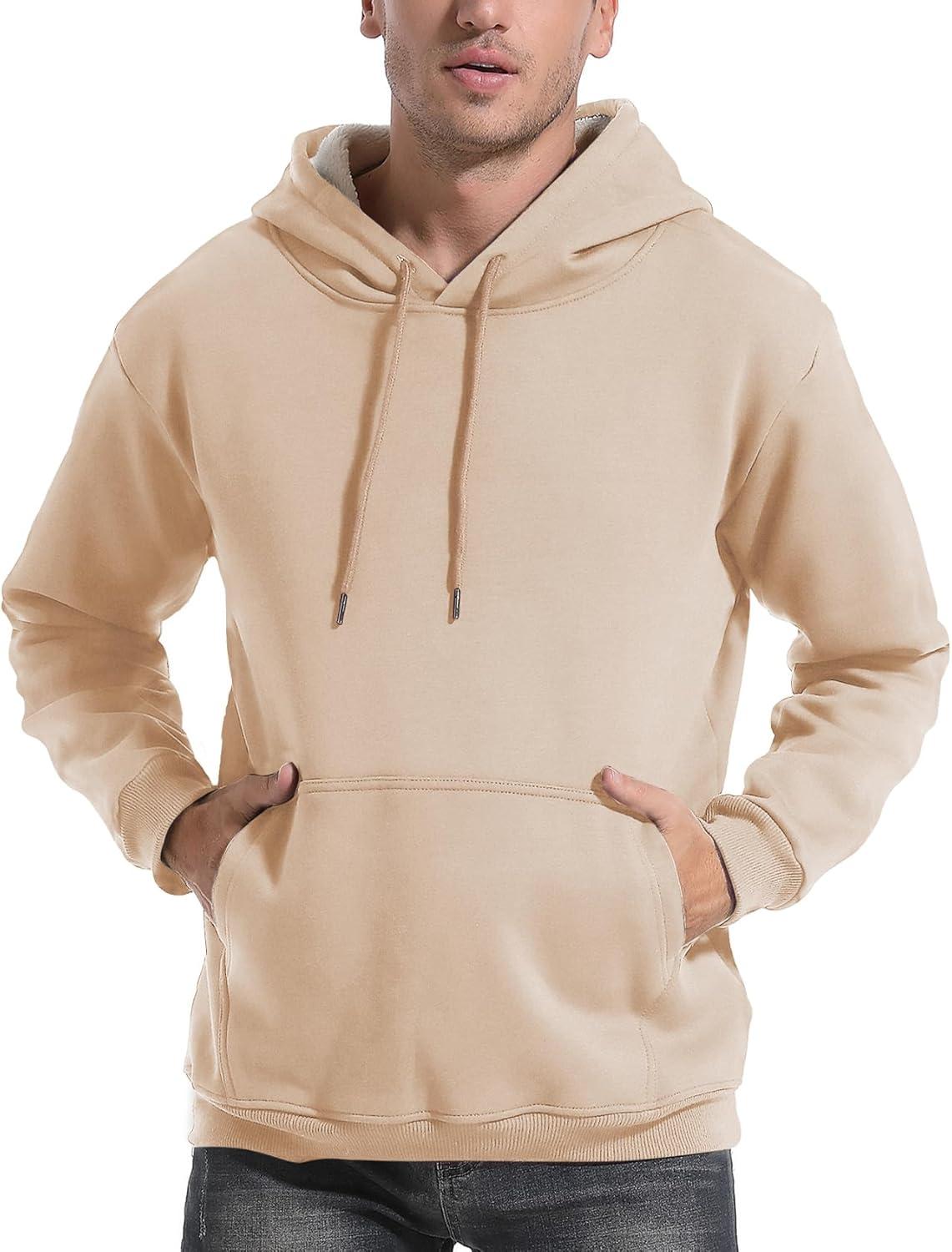 Flygo Men’s Casual Fleece Sherpa Lined Hoodie Winter Warm Pullover Hooded Sweatshirt(Camel)