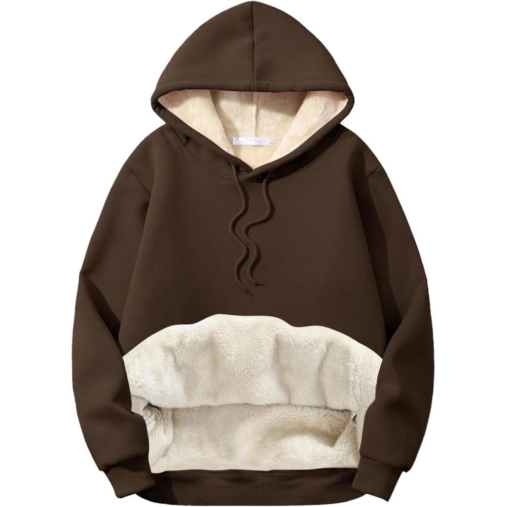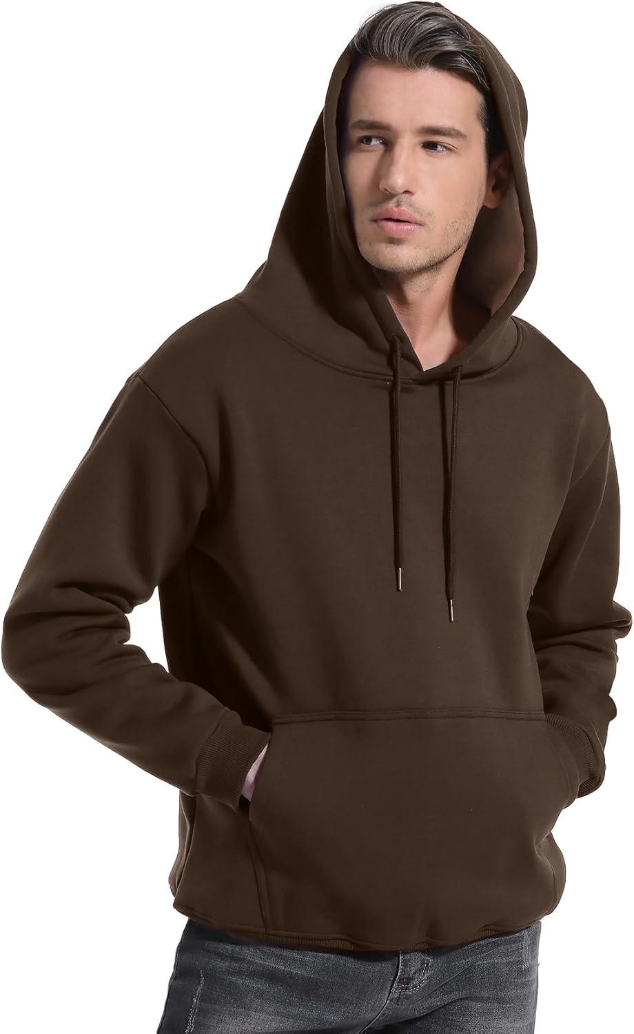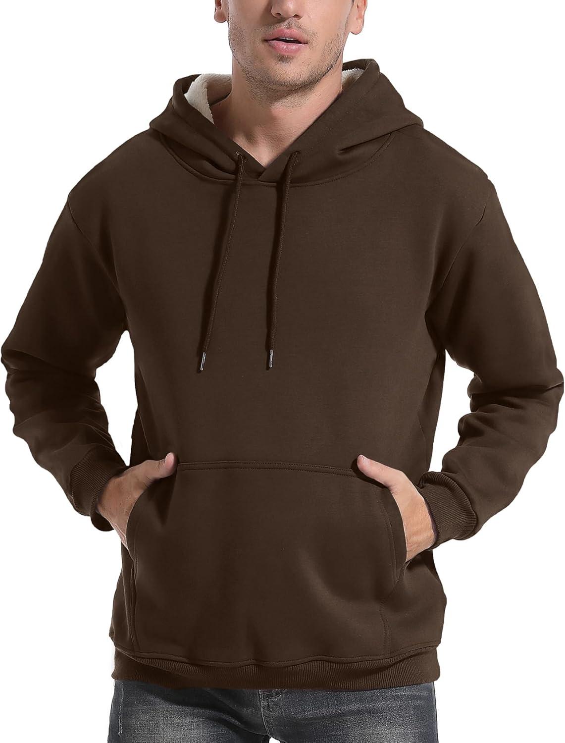Flygo Men’s Casual Fleece Sherpa Lined Hoodie Winter Warm Pullover Hooded Sweatshirt(Coffee Brown)