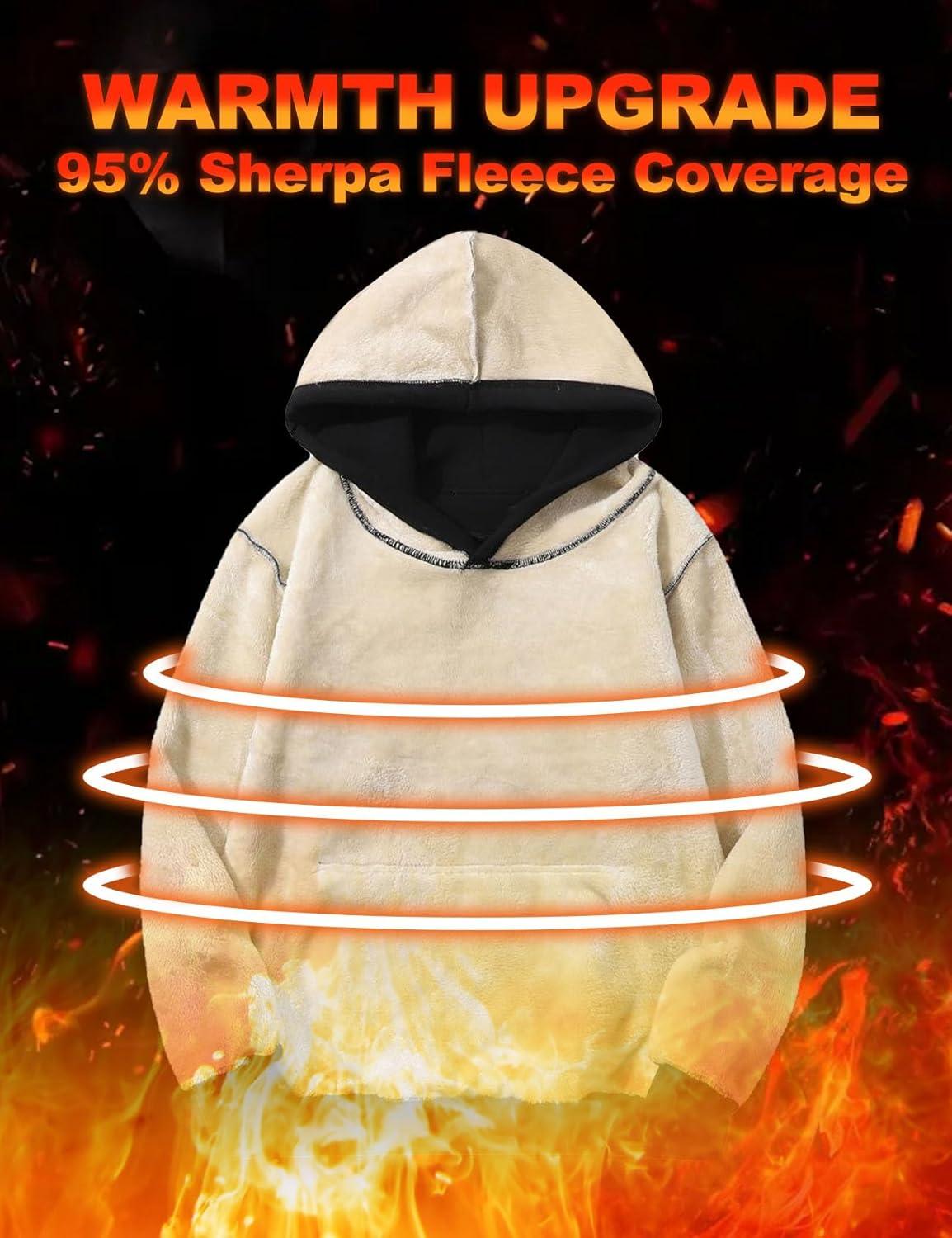 Flygo Men's Casual Fleece Sherpa Lined Hoodie Winter Warm Pullover Hooded Sweatshirt