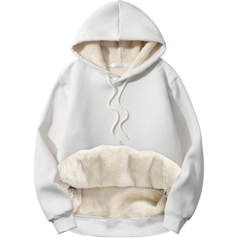 Flygo Men’s Casual Fleece Sherpa Lined Hoodie Winter Warm Pullover Hooded Sweatshirt(White)