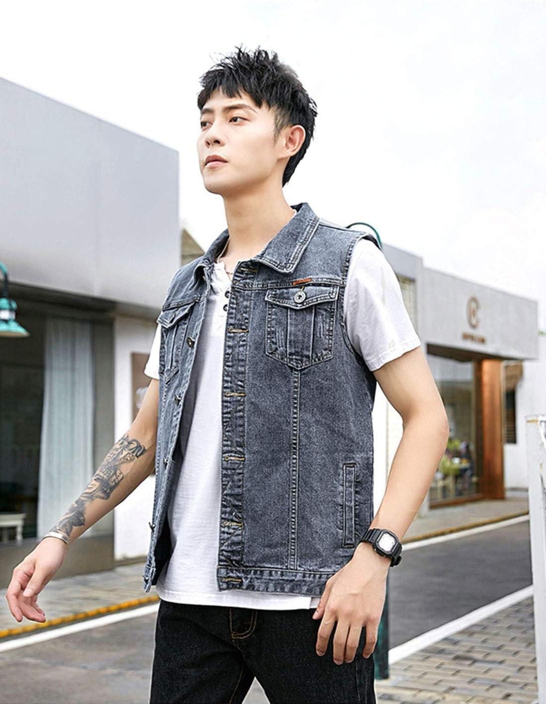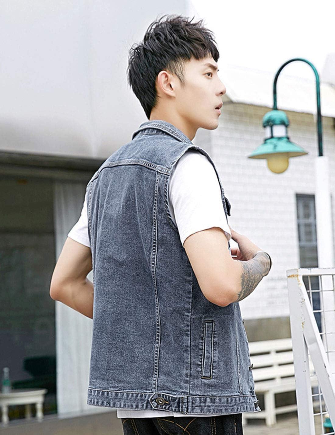 Flygo Men’s Casual Lapel Button-Down Denim Vest Sleeveless Trucker Jeans Vests Jacket(Grey)