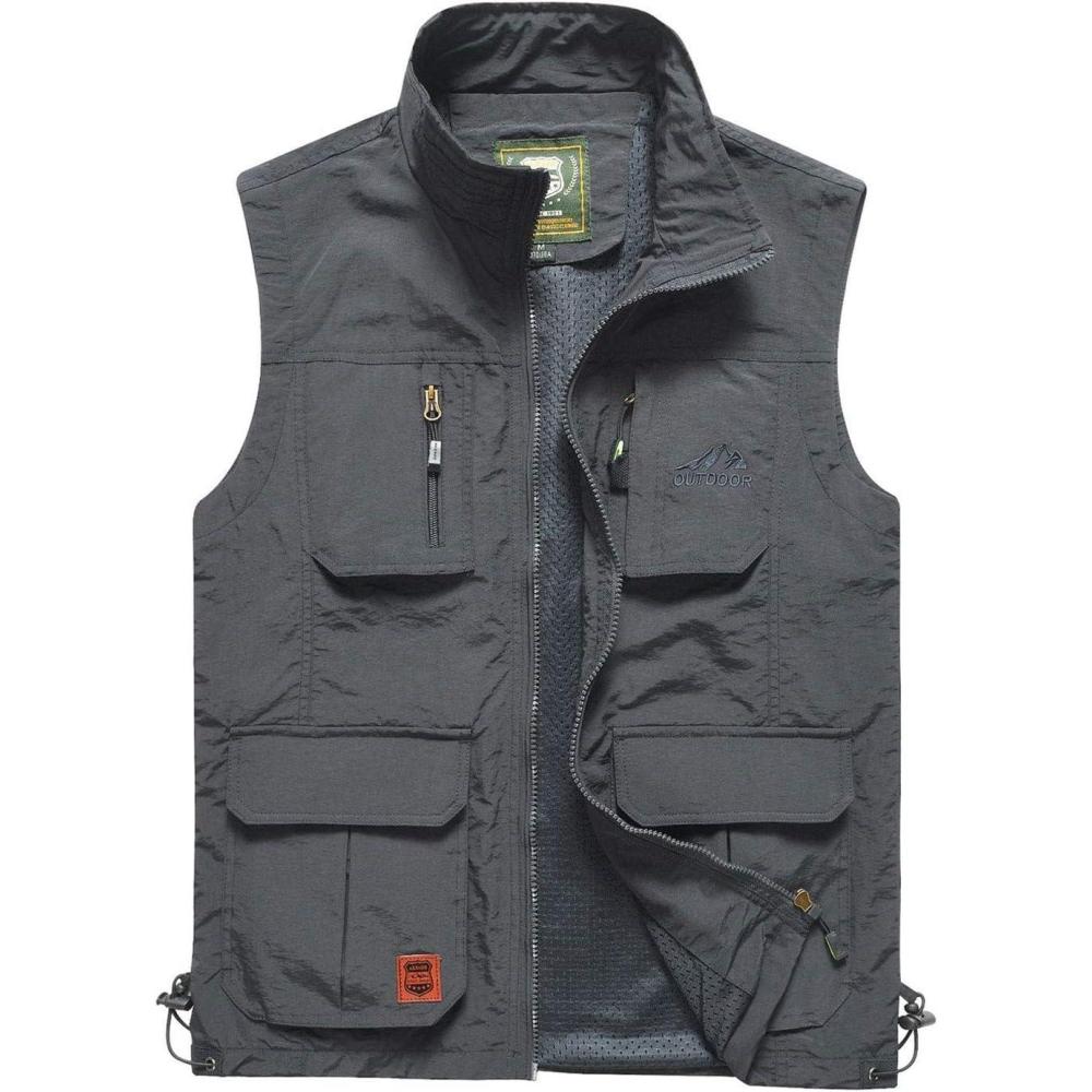 Flygo Mens Casual Lightweight Multi-Pockets Outdoor Work Fishing Travel Photo Vest(Grey)