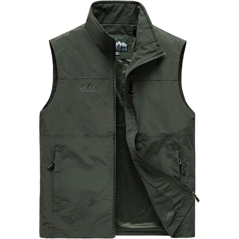 Flygo Men’s Casual Lightweight Outdoor Work Safari Fishing Travel Photo Vest Multi Pockets(02 Style Army Green)
