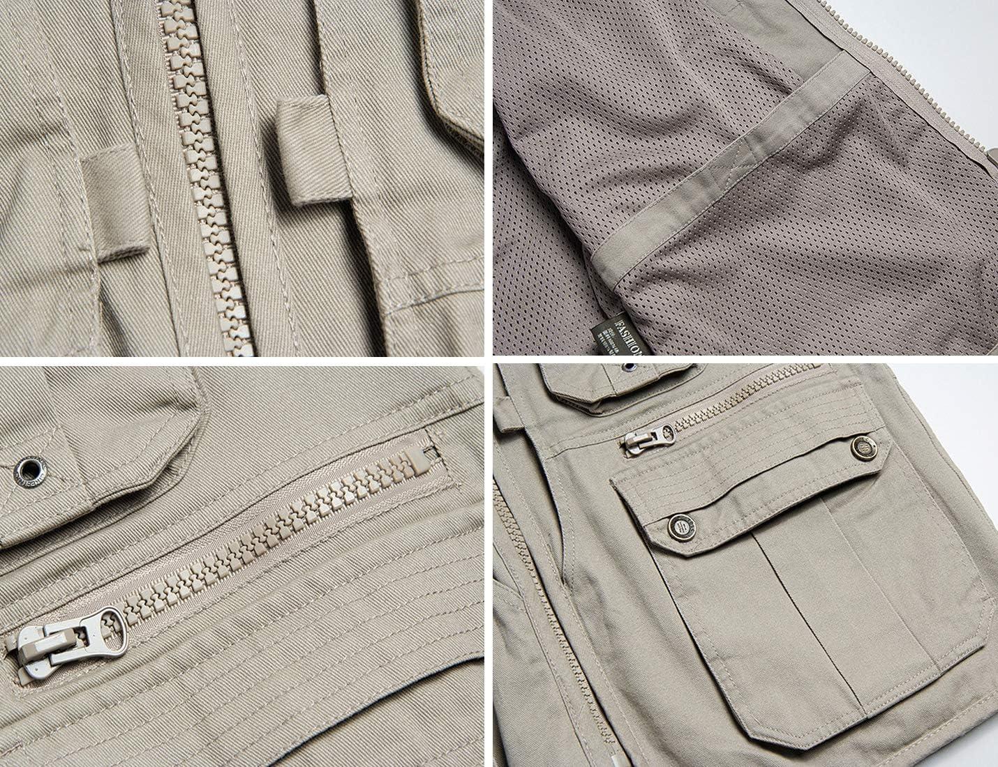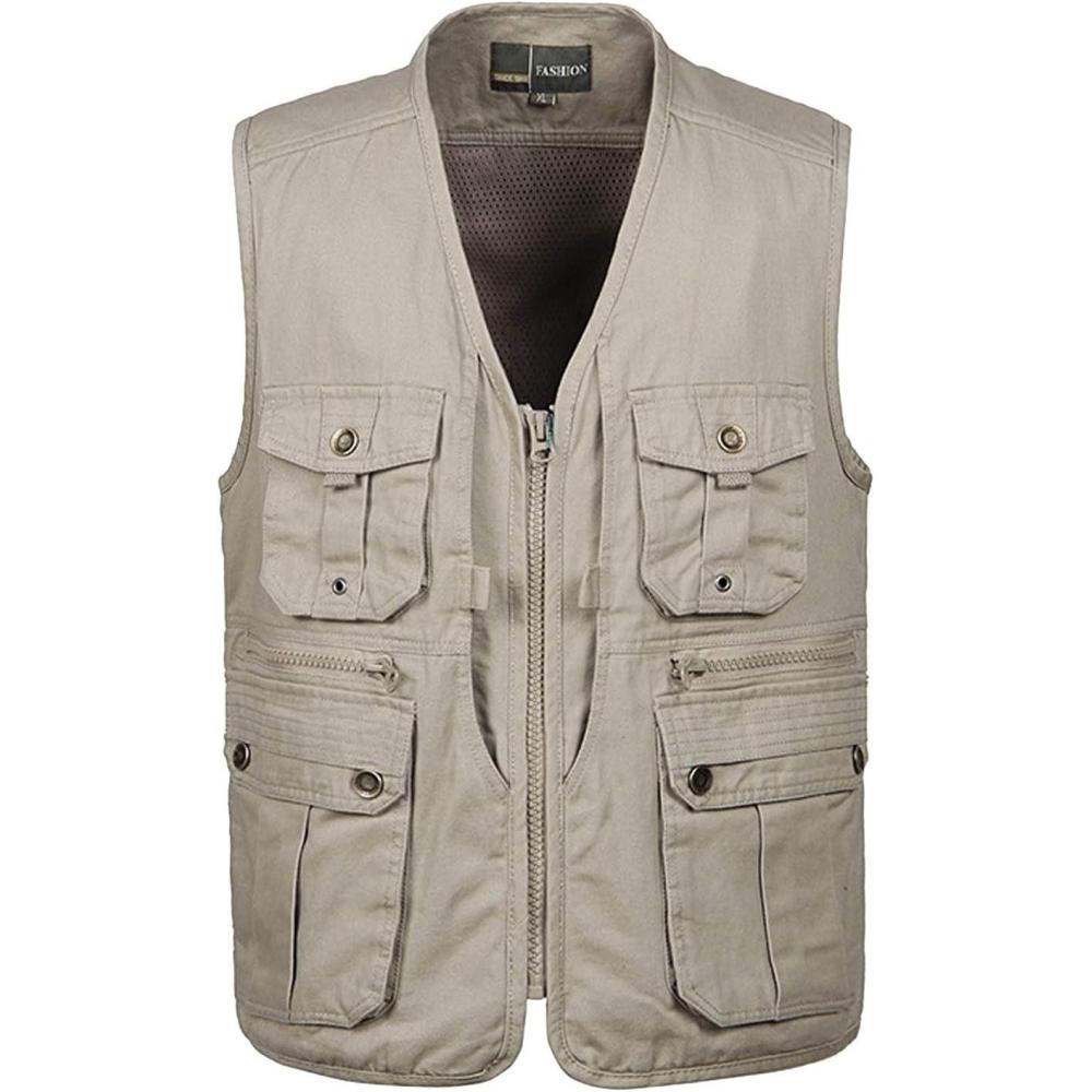Flygo Mens Casual Outdoor Work Utility Safari Fishing Travel Vest with Pockets(Khaki)