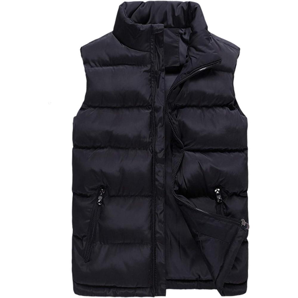 Flygo Men’s Casual Winter Warm Outdoor Padded Puffer Vest Quilted Coat Jacket(Black)