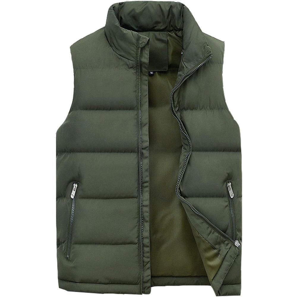 Flygo Men’s Casual Winter Warm Outdoor Padded Puffer Vest Quilted Coat Jacket(Green)