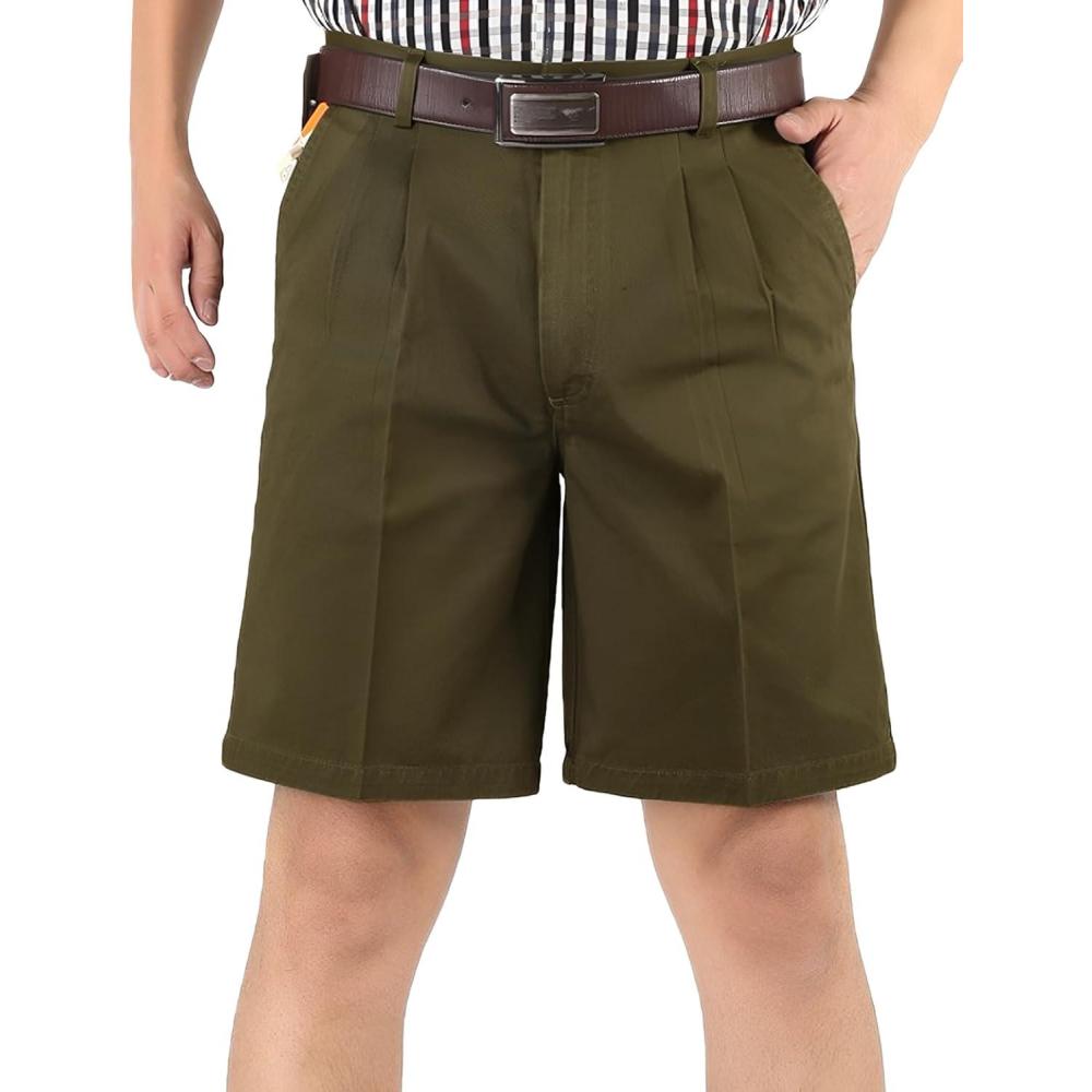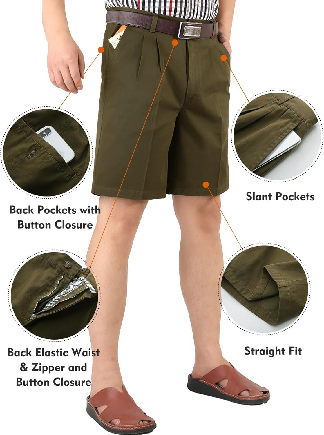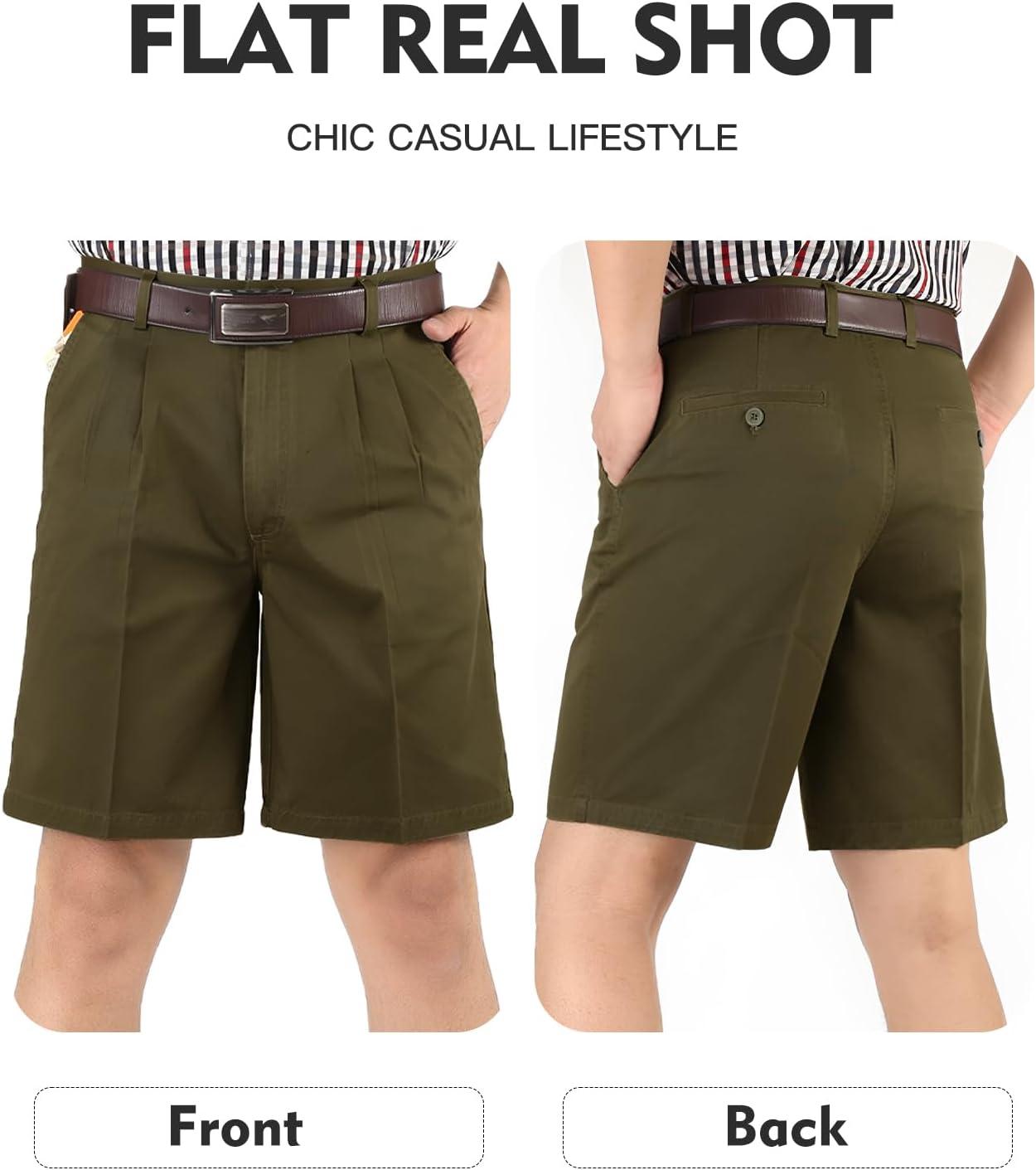 Flygo Men’s Classic Fit 7” Inseam Chino Oxford Shorts Pleated Flat Golf Shorts(Army Green)