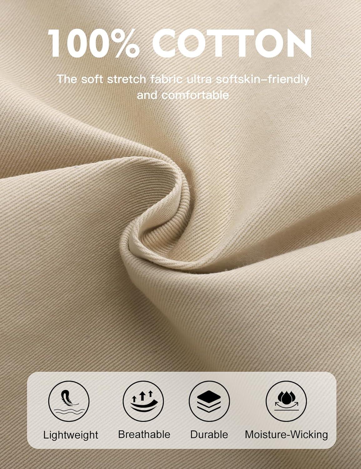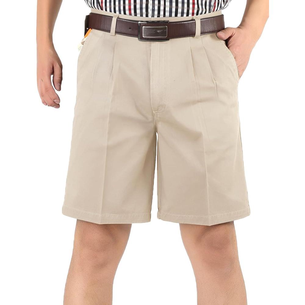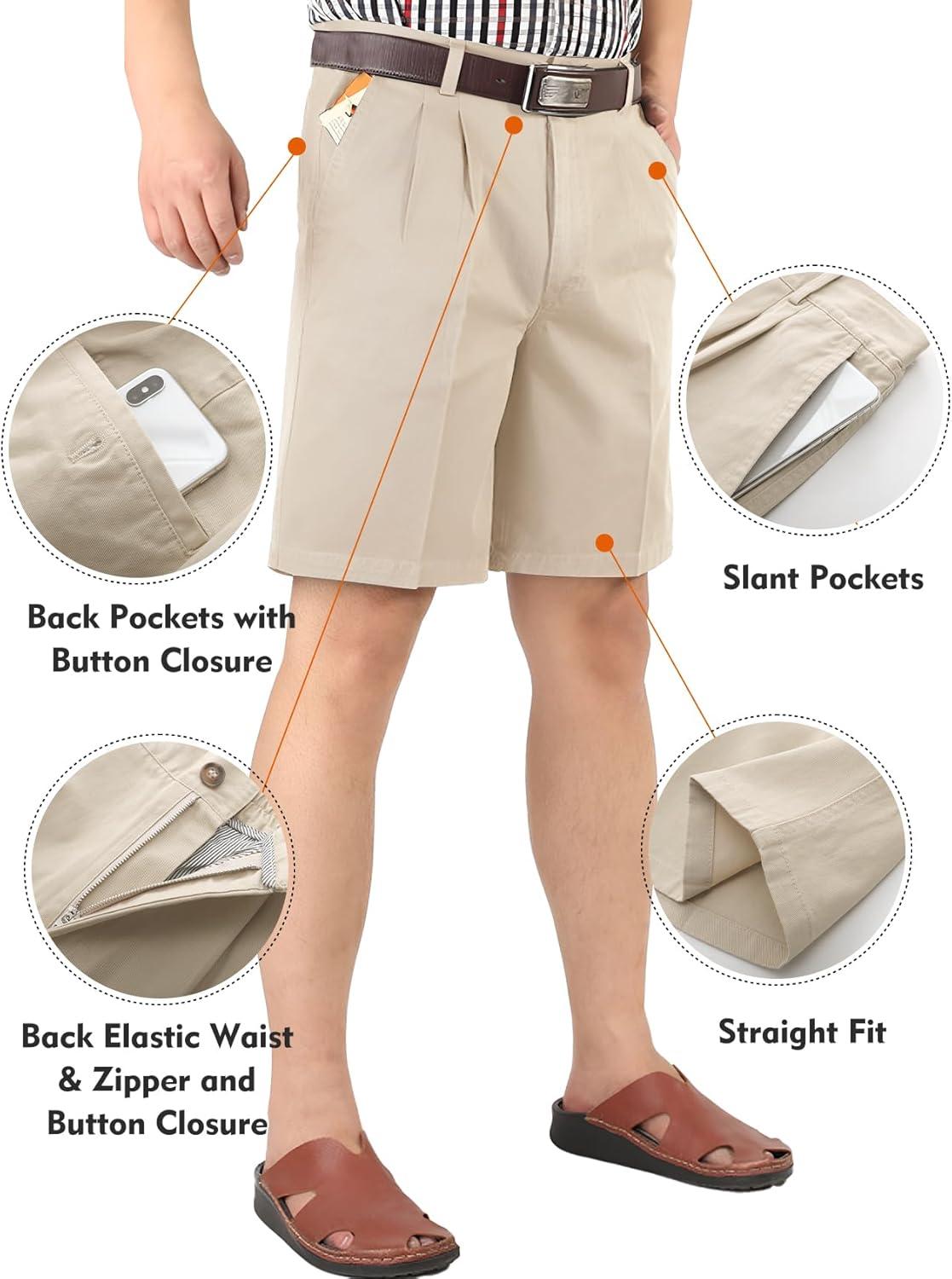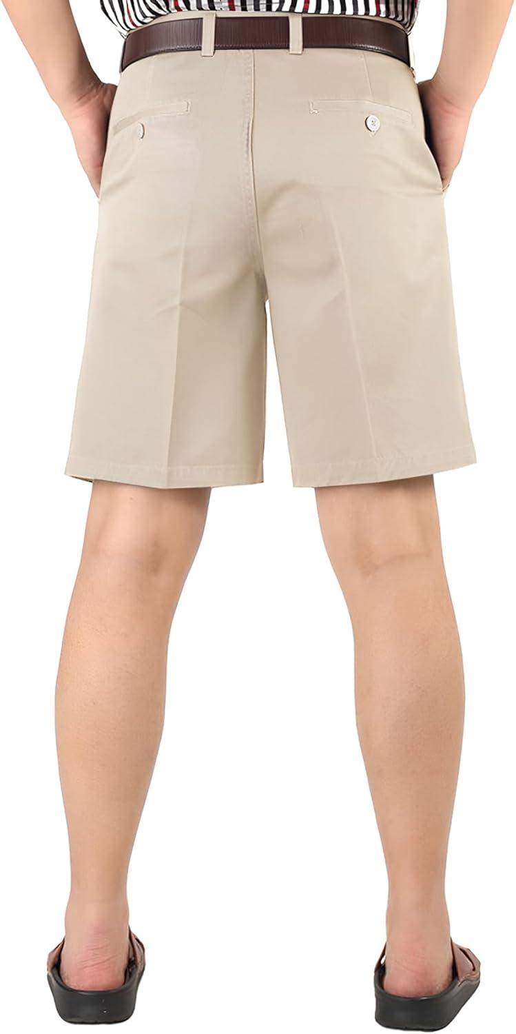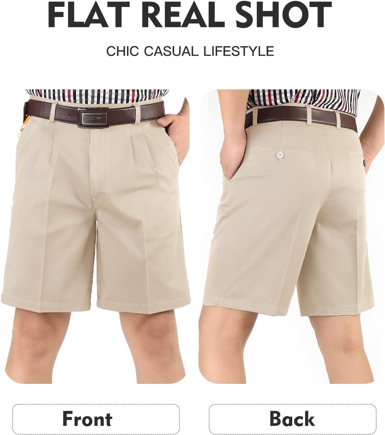 Flygo Men’s Classic Fit 7” Inseam Chino Oxford Shorts Pleated Flat Golf Shorts(Beige)