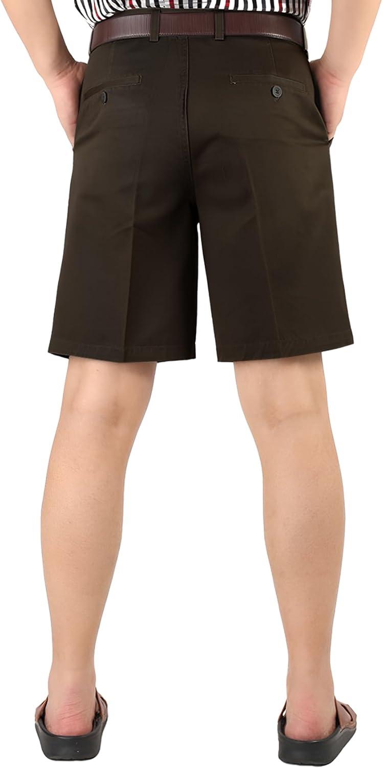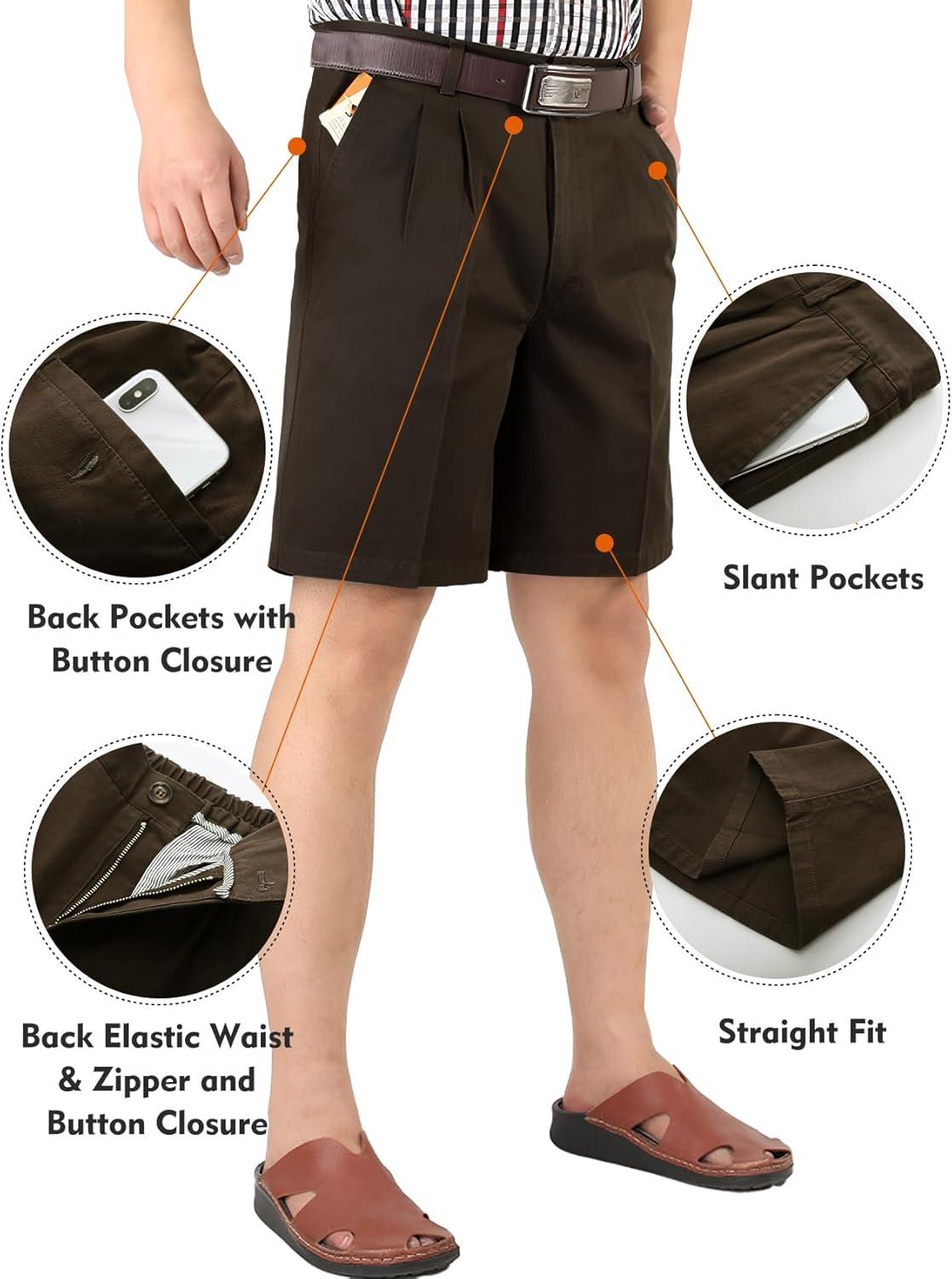 Flygo Men’s Classic Fit 7” Inseam Chino Oxford Shorts Pleated Flat Golf Shorts(Khaki)