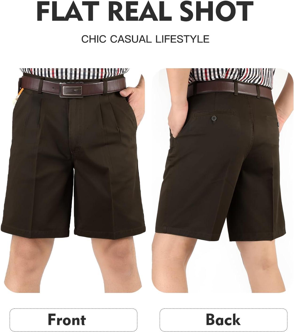 Flygo Men’s Classic Fit 7” Inseam Chino Oxford Shorts Pleated Flat Golf Shorts(Coffee)