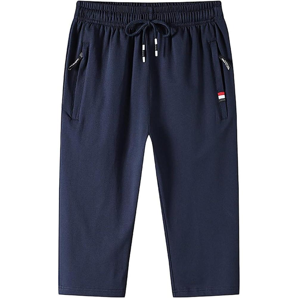 Flygo Men’s Cotton Casual Shorts 3/4 Jogger Capri Pants Below Knee Cropped Pants Zipper Pockets(02 Navy)