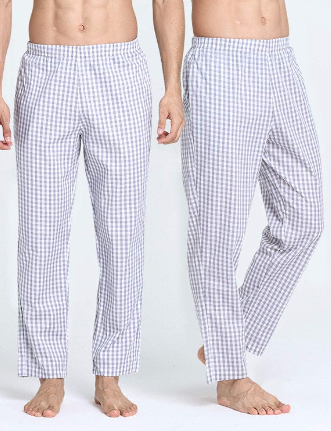 Flygo Mens Soft Cotton Plaid Sleep Lounging Long Pajama Pants Sleepwear