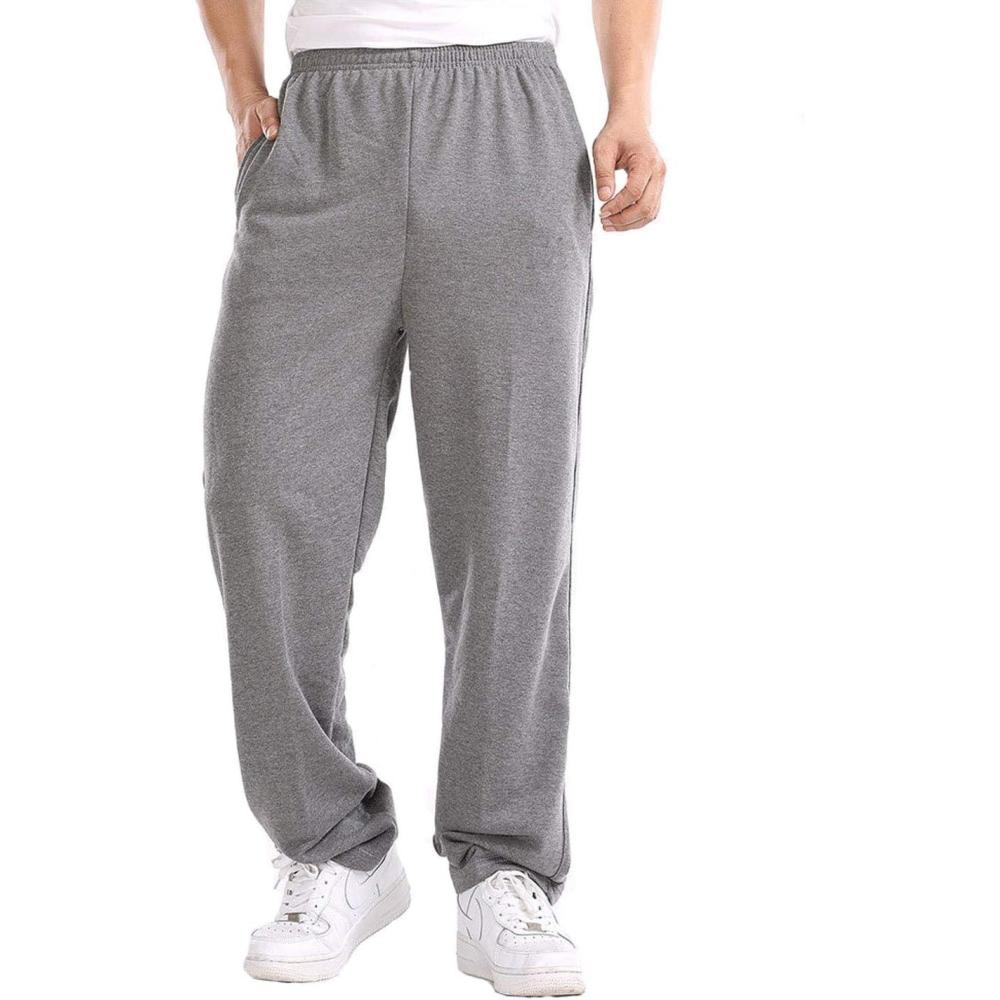 Flygo Mens Cotton Open-Bottom Lightweight Joggers pant Sweatpants with Pockets