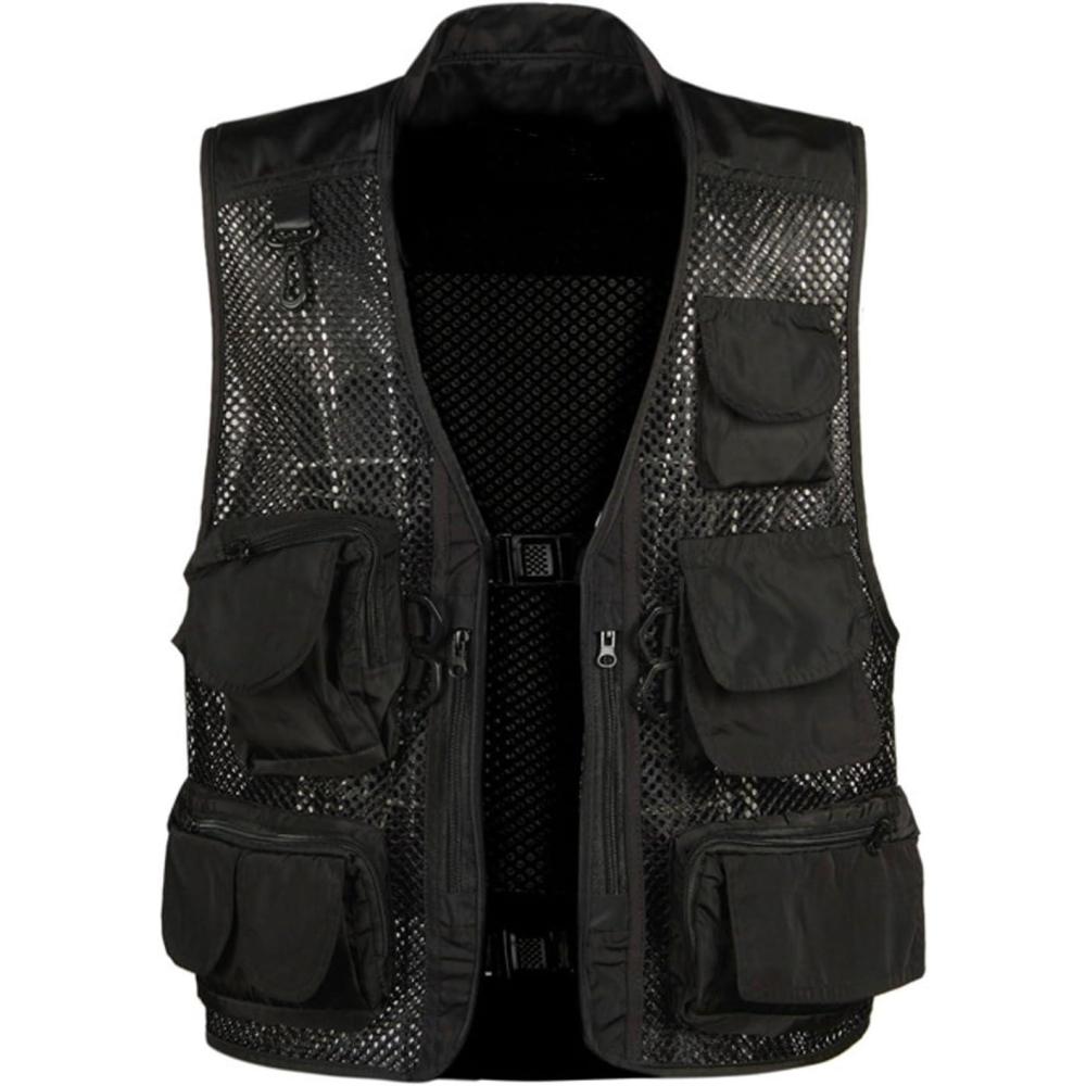 Flygo Men’s Fishing Outdoor Utility Hunting Climbing Tactical Camo Mesh Removable Vest with Multi Pocket (Large, Black 02)