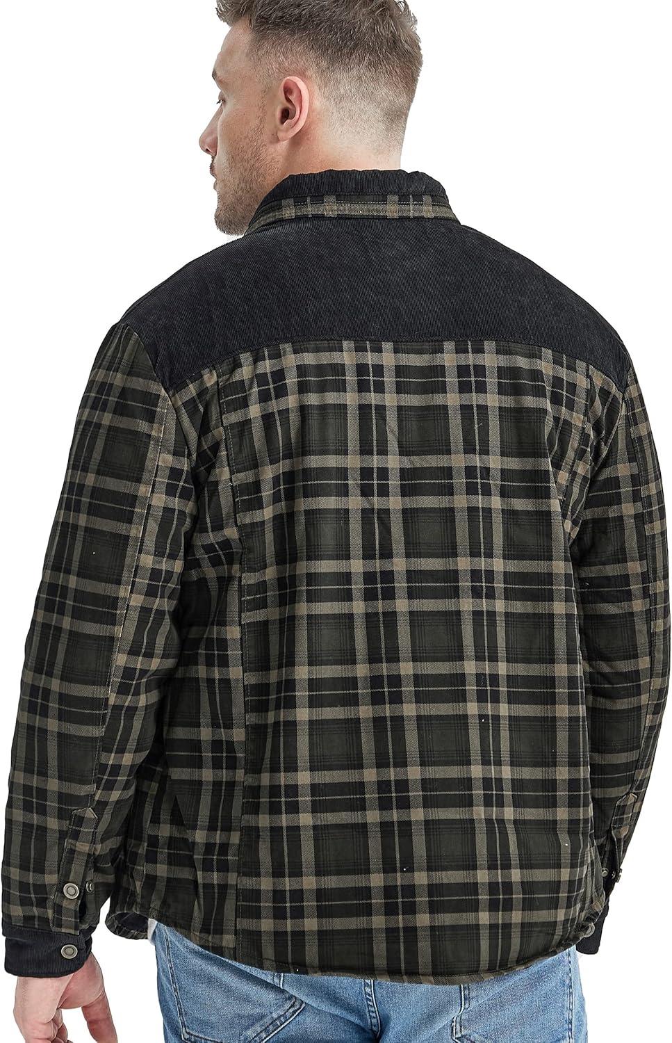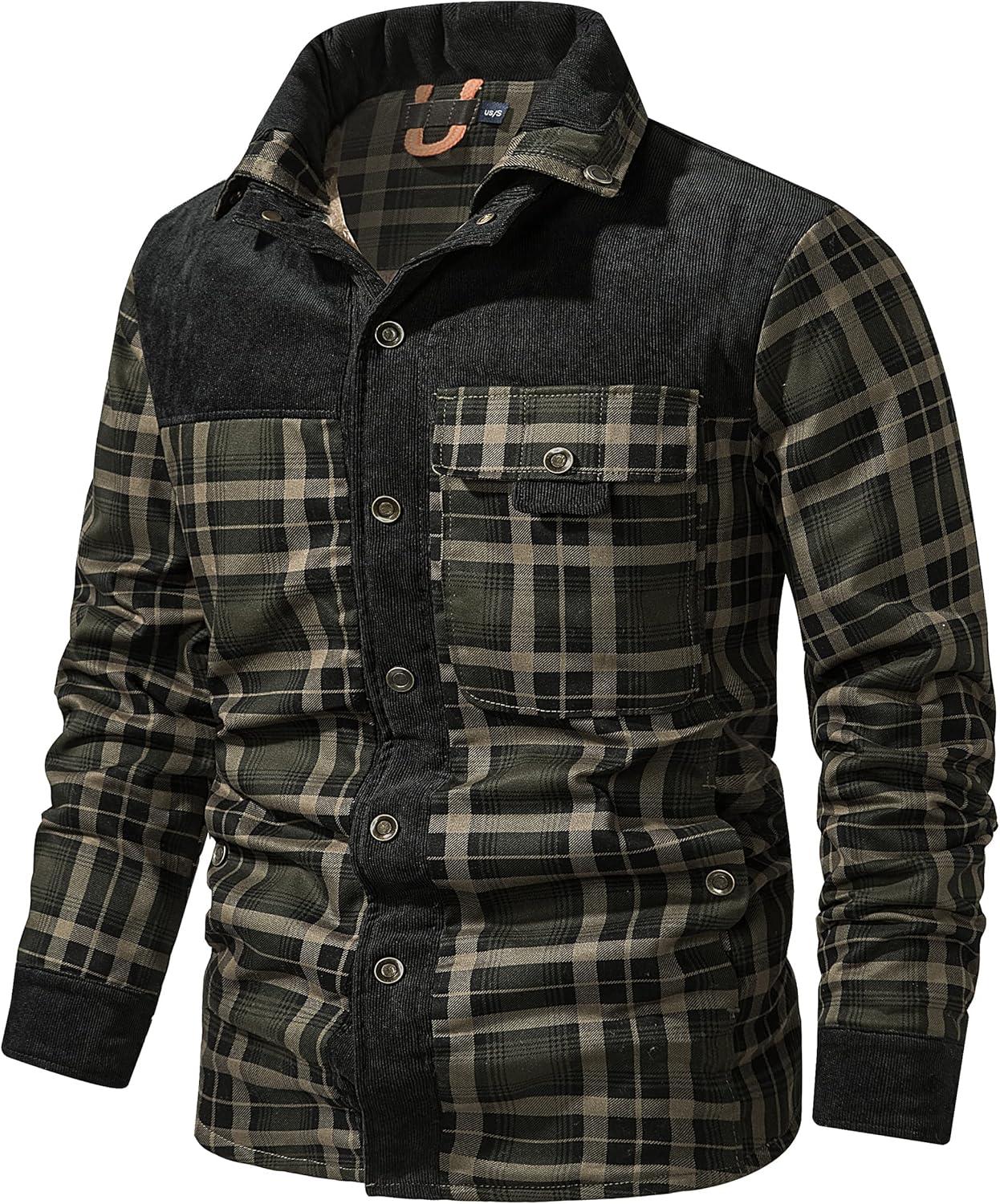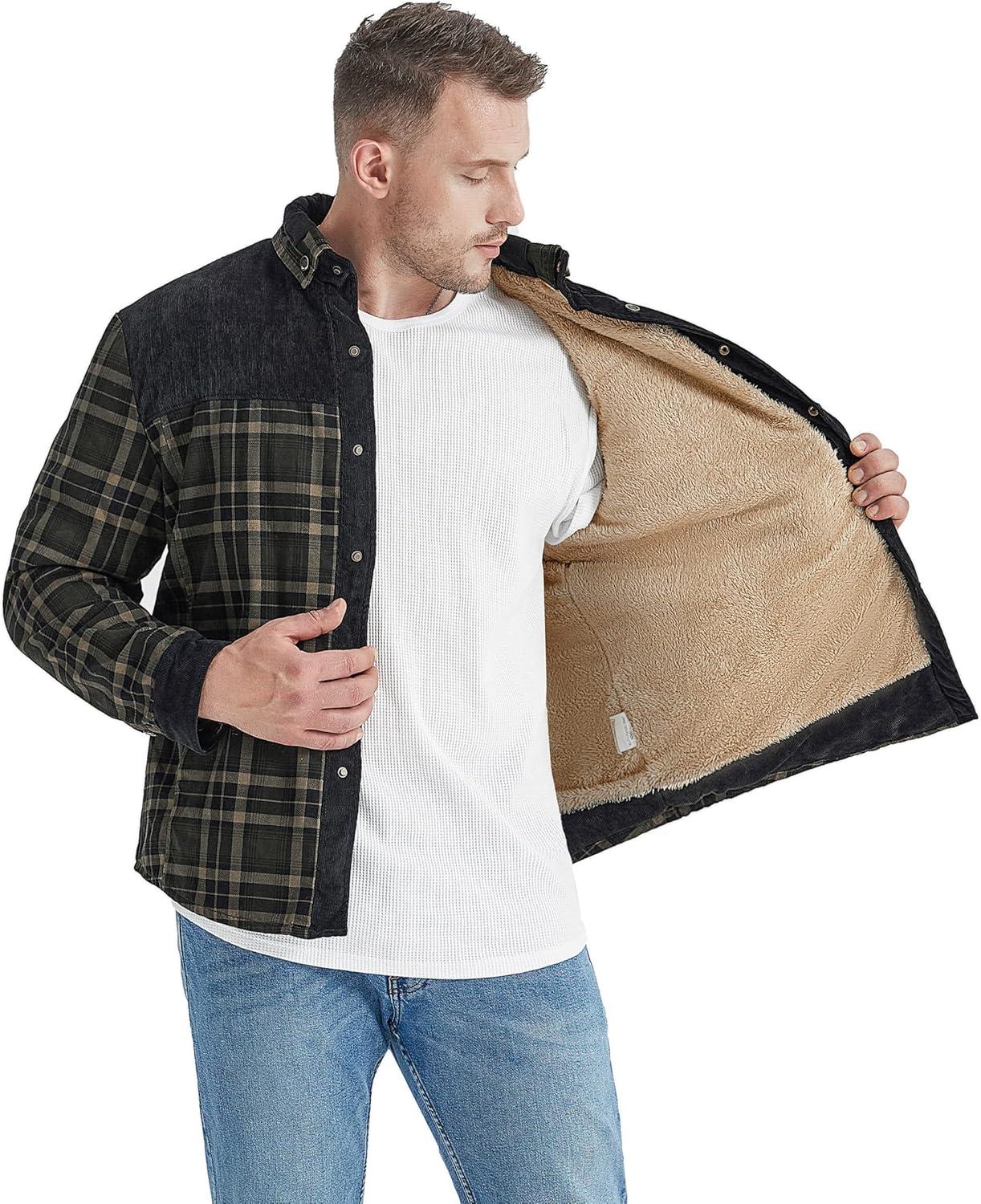 Flygo Men’s Flannel Jacket Loose Plaid Sherpa Lined Flannel Shirt Snap Button Warm Winter Jackets Pockets(Green)