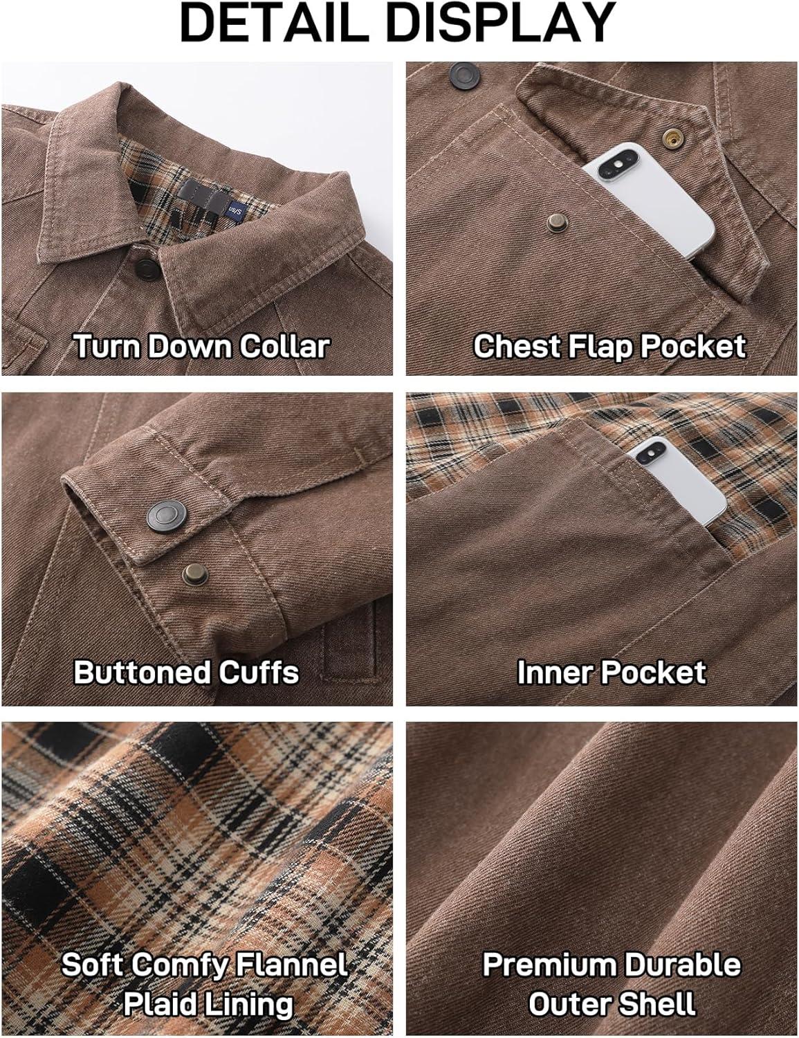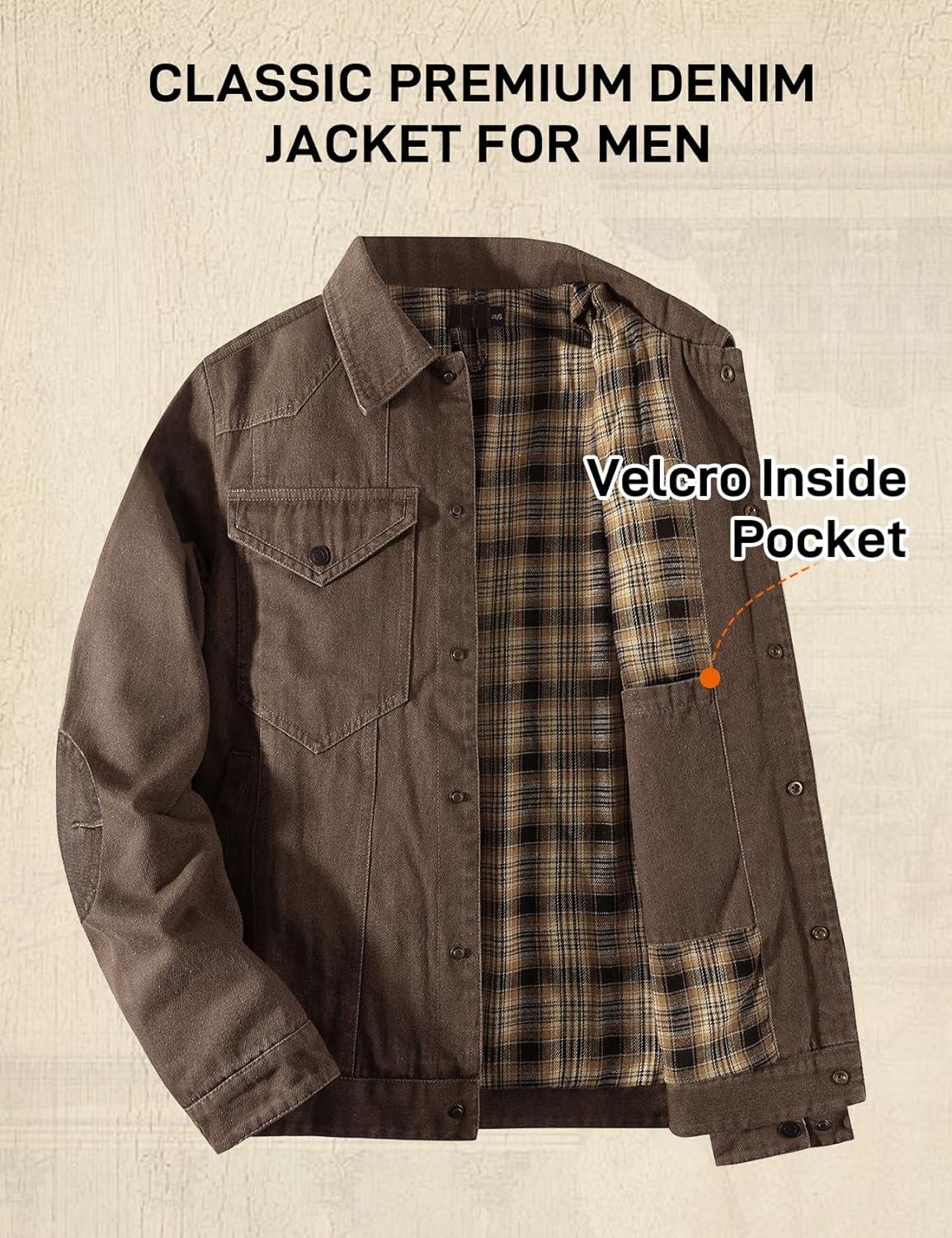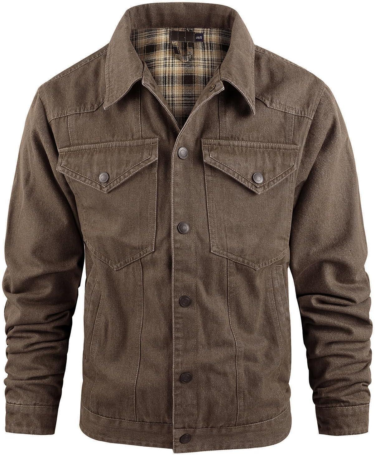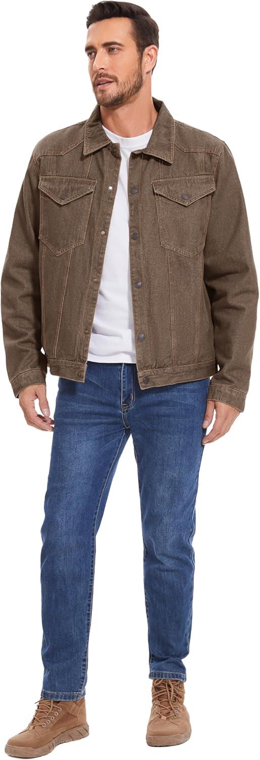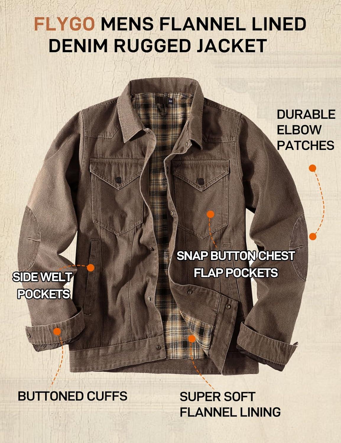 Get the Flygo Mens Flannel Lined Denim Jacket Snap Cowboy Cut Western Classic Slim Fit Vintage Heavy Duty Jacket Trucker Coat(Brown) you want at a price you can afford with our markdown sale.