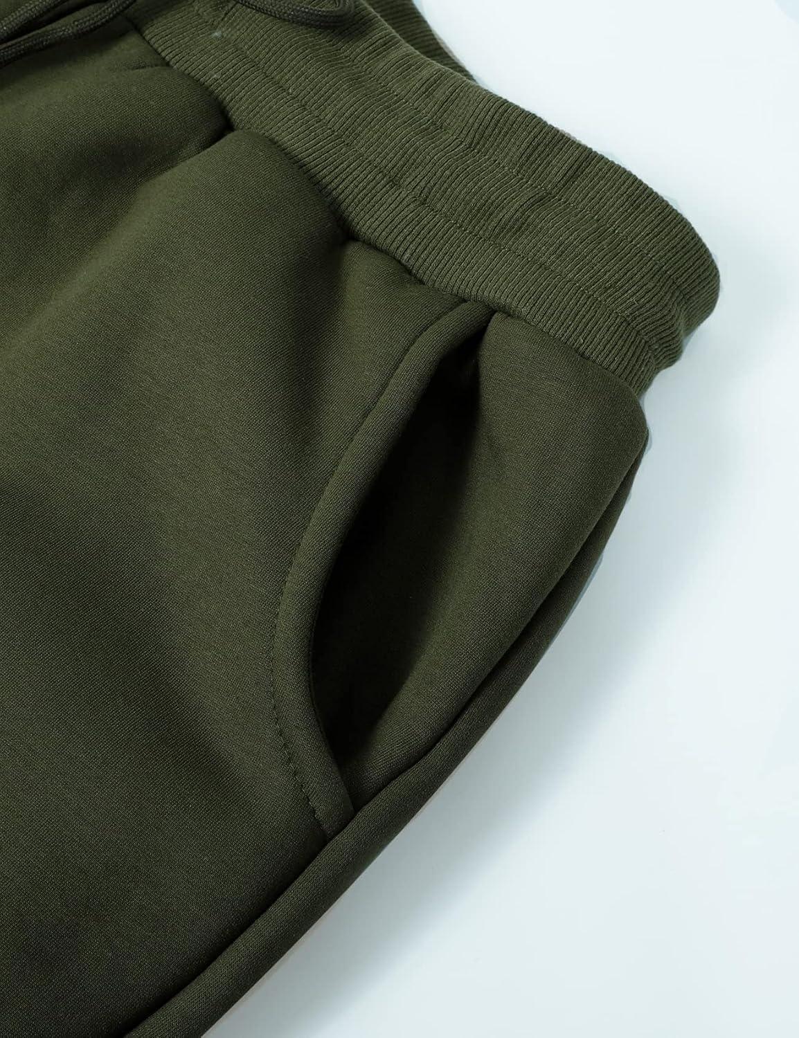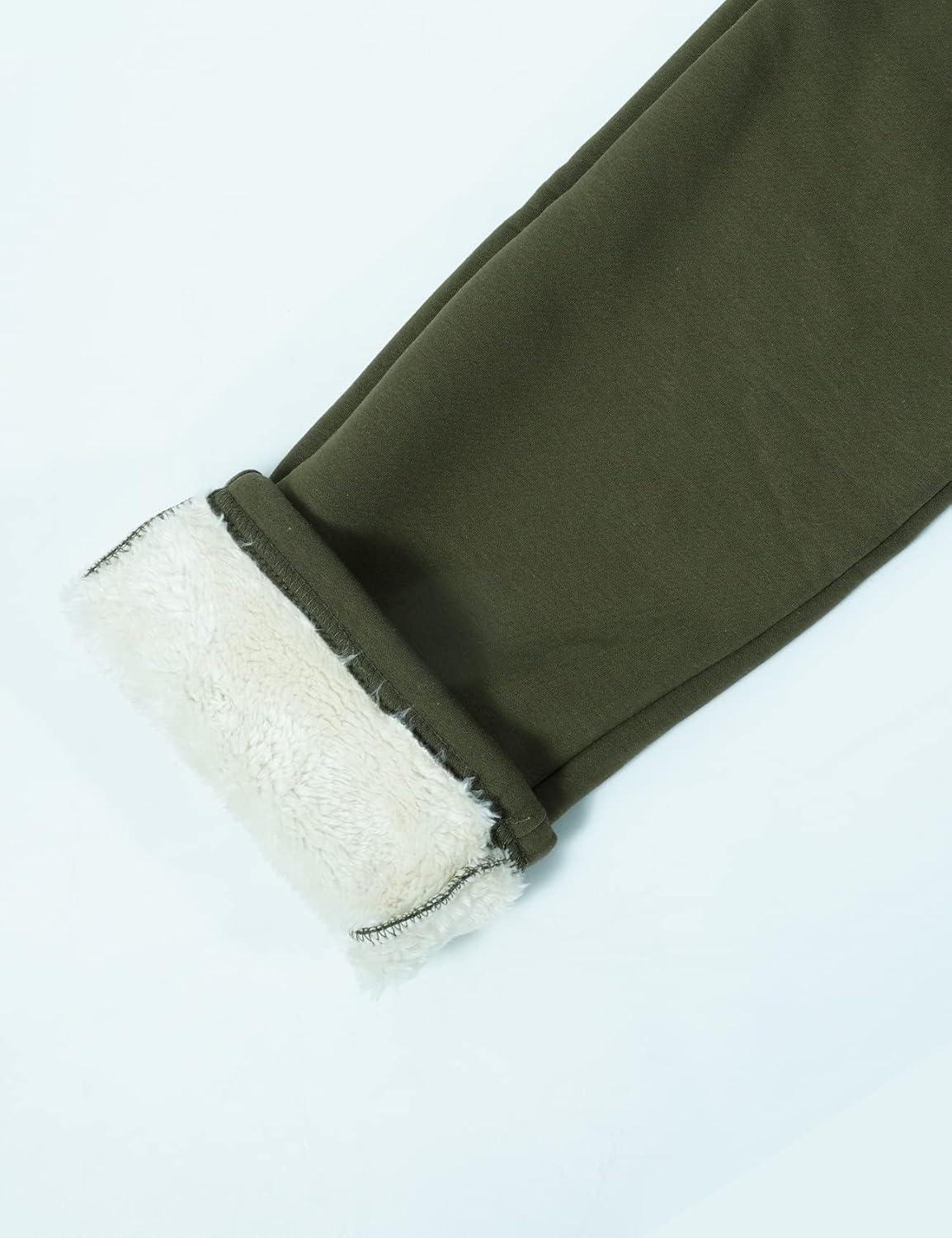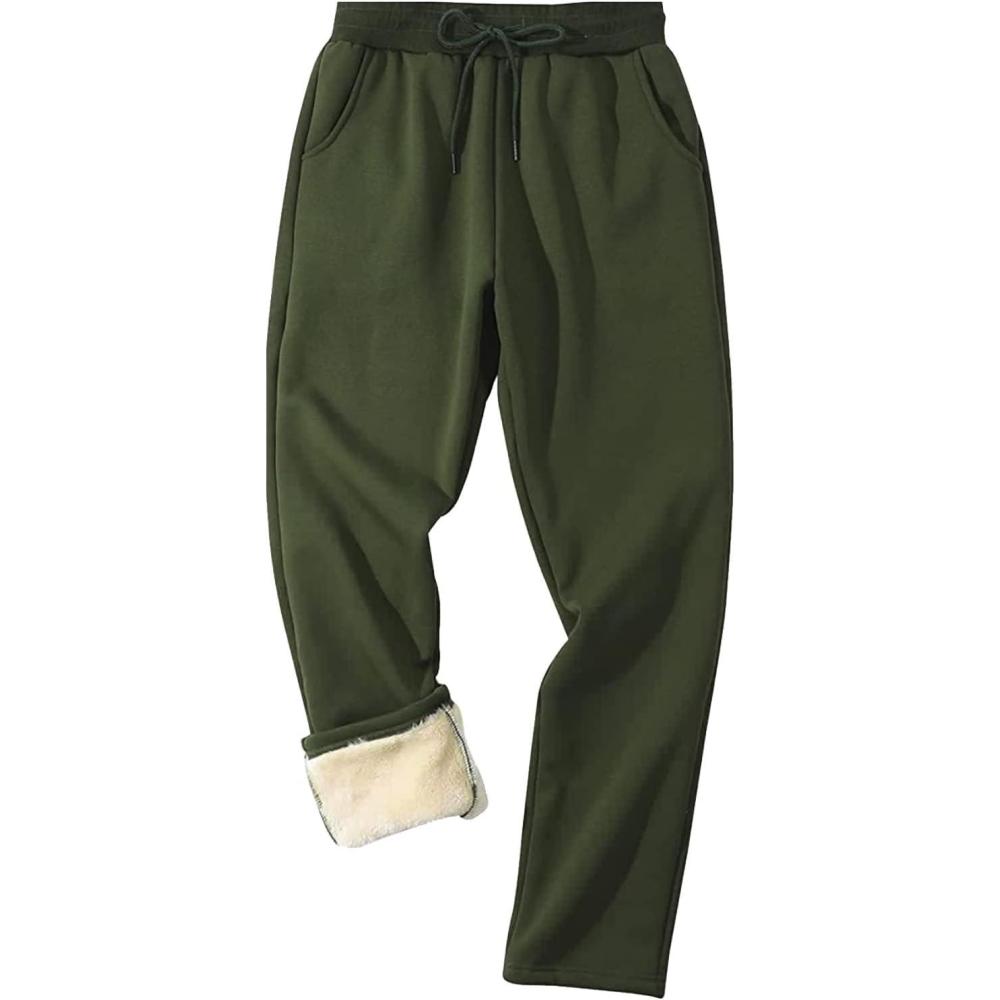 Flygo Men’s Fleece Lined Sherpa Sweatpants Winter Warm Pants Jogger Lounge Athletic Pant with Pockets(Army Green (Open Bottom))