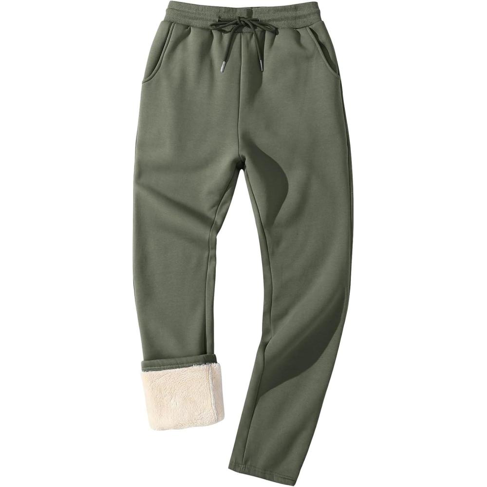 Flygo Men’s Fleece Lined Sherpa Sweatpants Winter Warm Pants Jogger Lounge Athletic Pant with Pockets(Greygreen(open Bottom))