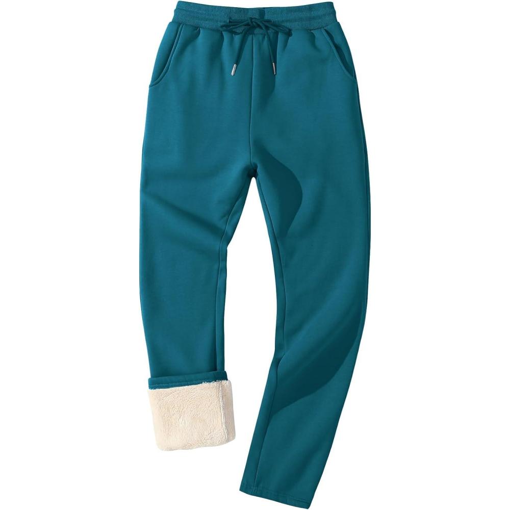 Flygo Men’s Fleece Lined Sherpa Sweatpants Winter Warm Pants Jogger Lounge Athletic Pant with Pockets(Lakeblue(open Bottom))