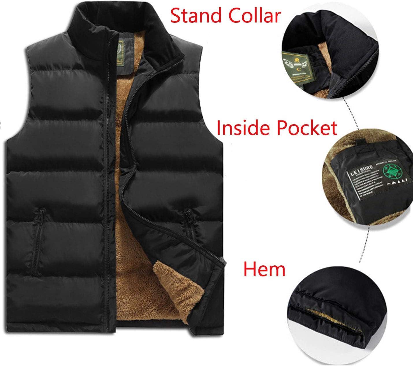 Flygo Men’s Fleece Lined Winter Warm Outdoor Padded Puffer Vest Thick Sleeveless Jacket with Pockets(Black)