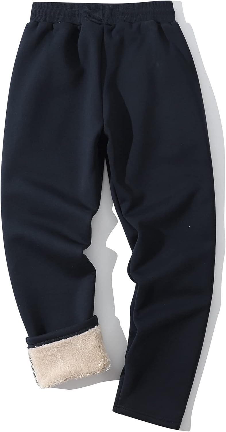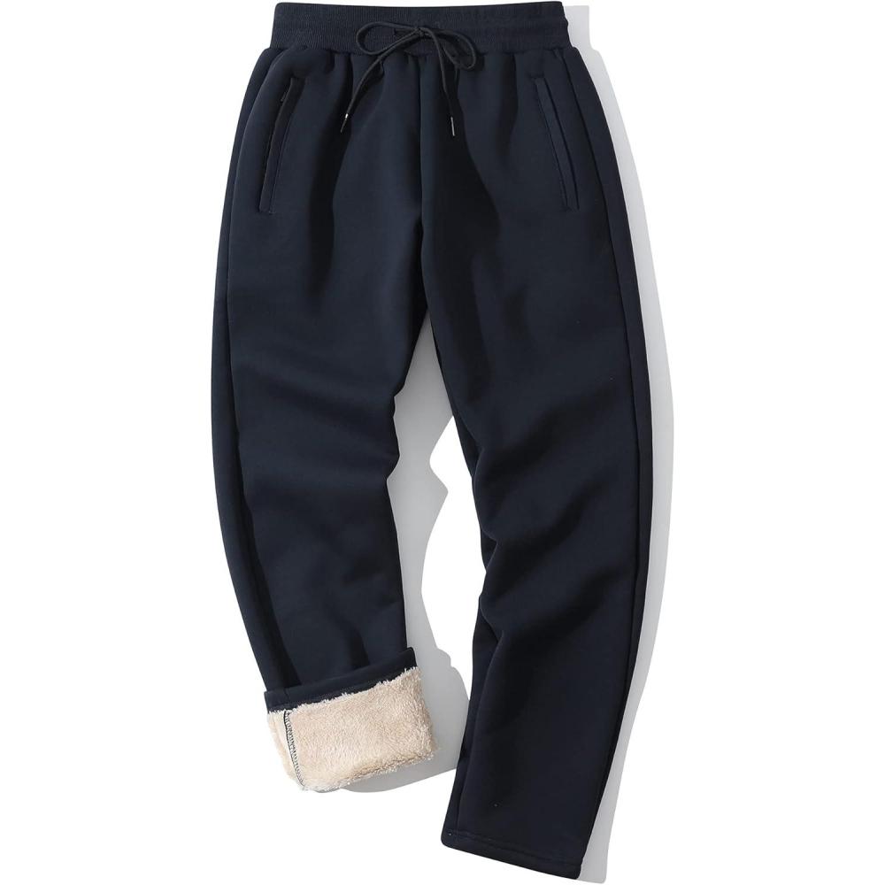 Flygo Men’s Fleece Pants Winter Active Joggers Sweatpants Thermal Sherpa Lined Pants(Navy)